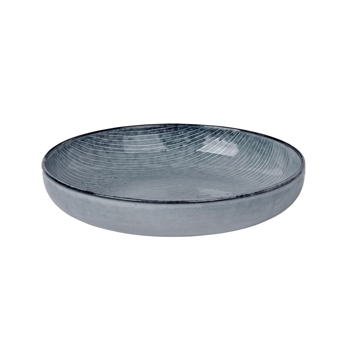 Le bol Nordic Sea fait partie de la série de vaisselle Nordic, le cœur de la Broste Copenhagen . Depuis son introduction en 2009, des plats ont été trouvés dans de nombreux restaurants et cuisines du monde entier. Le dégradé de couleurs doux est créé par un processus de gravure spécial et représente la puissance d'origine de l'océan. Chaque pièce est unique car la glaçure réagit dynamiquement dans le four et peut conduire à différentes textures et couleurs.
