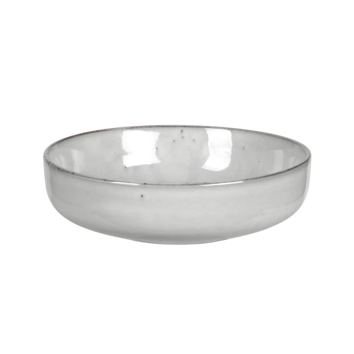 Le bol Nordic Sand de Broste Copenhagen fabriqué en grès au lave-vaisselle de différentes couleurs et tailles. D'autres plats de la série nordique sont également disponibles pour correspondre au bol.