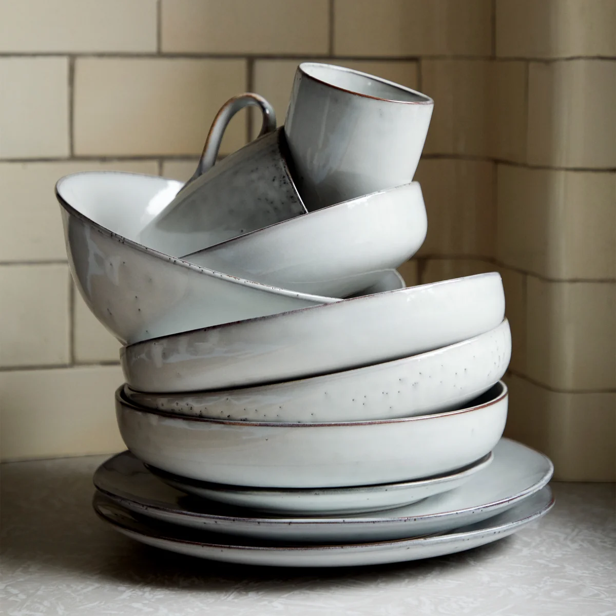 Le bol fait partie de la série de vaisselle nordique et est le cœur de la Broste Copenhagen . Depuis son introduction en 2009, des plats ont été trouvés dans de nombreux restaurants et cuisines privées à travers le monde. Le dégradé de couleur doux est créé par un processus de gravure spécial. Chaque pièce est unique car la glaçure réagit pendant le processus de cuisson et peut conduire à différentes textures et couleurs.