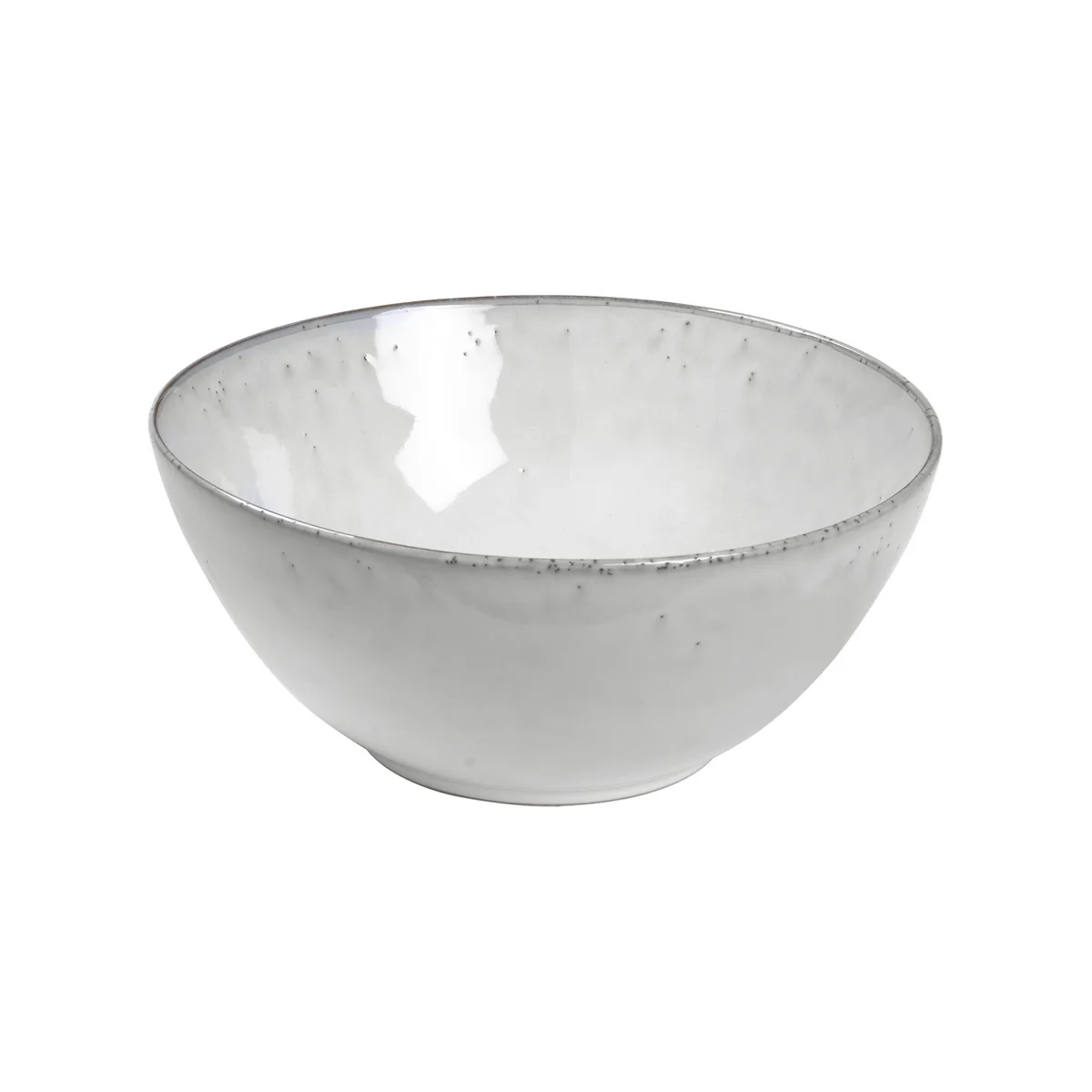 Le bol Nordic Sand de Broste Copenhagen fabriqué en grès au lave-vaisselle de différentes couleurs et tailles. D'autres plats de la série nordique sont également disponibles pour correspondre au bol.