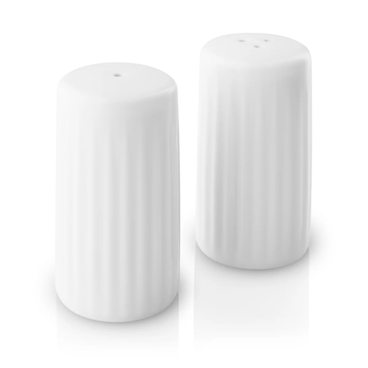 L'ensemble sel et poivre Legio Nova d'Eva Trio se prête à un usage quotidien et festif grâce à son motif de sillons iconique mais discret. L'ensemble a un effet décoratif sur la table à manger et est pratique et toujours à portée de main sur le plan de travail à côté du poêle.