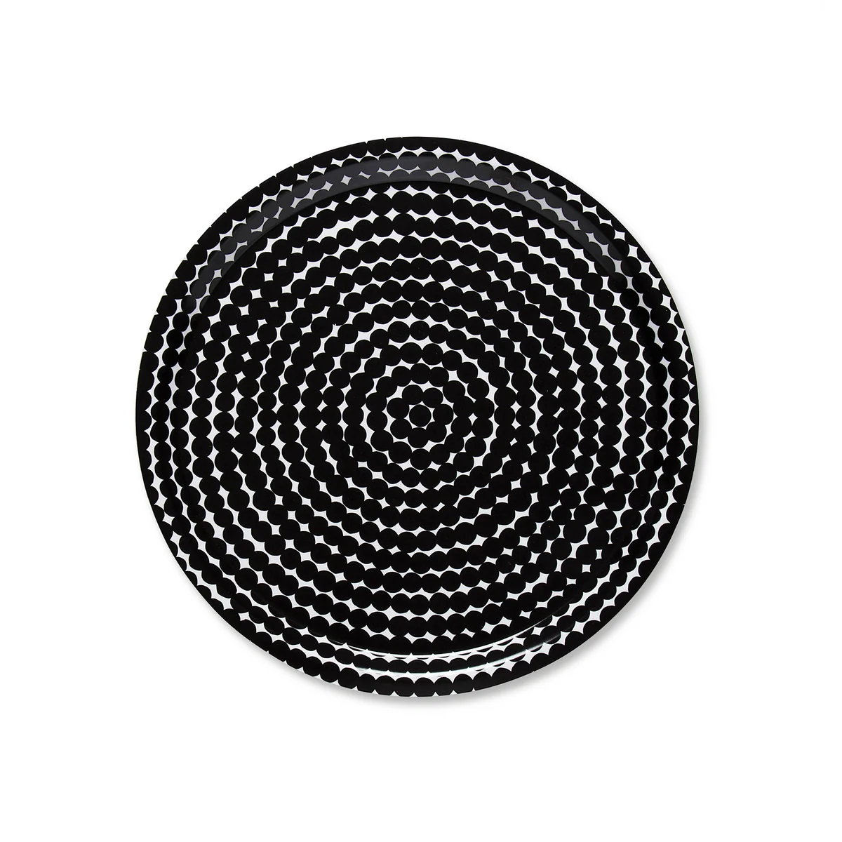 Un plateau Marimekko est également décoré du motif pointillé. En tant qu'élément décoratif dans la cuisine et dans la salle de séjour, il convient aussi bien pour le service et l'organisation de petites collations que pour la mise en scène d'huiles ou d'épices de manière élégante. Les objets du quotidien comme les bijoux et les clés trouvent également leur place sur le plateau et peuvent y attendre leur prochaine utilisation.