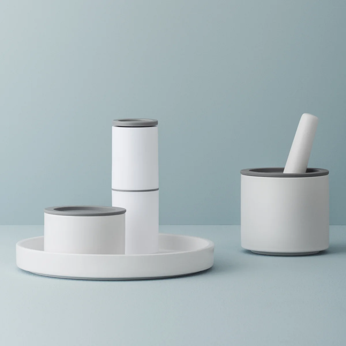 Le site Spice-It design de Halskov & Dalsgaard est fabriqué en grès blanc, ce qui le rend non seulement particulièrement robuste, mais aussi classique dans sa forme et sa couleur. Sur une table en bois et en combinaison avec les moulins à épices et autres ustensiles de cuisine Rig Tig assortis, le plateau attire particulièrement l'attention.