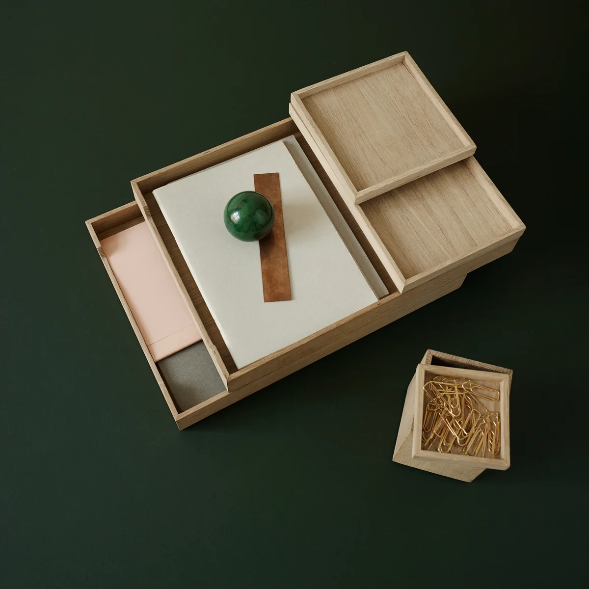L'équipe de designers de VE2 a conçu pour le fabricant danois Skagerak un équipement de bureau de qualité en bois de chêne. De différentes tailles, les Nomad Trays peuvent être combinés et empilés individuellement - une possibilité de rangement élégante pour les ciseaux, les stylos, le coupe-papier et autres petits objets.