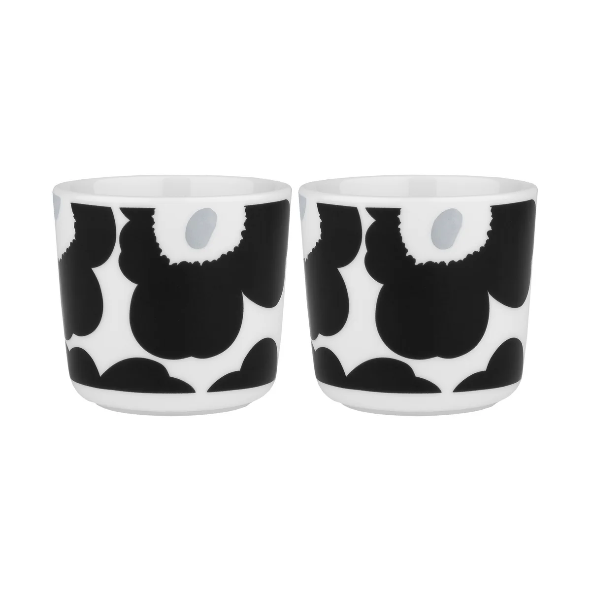 Le Oiva Unikko gobelet sans anse de Marimekko est décoré du célèbre motif floral de Maija Isola. Unikko, qui signifie "coquelicot" en français, est le motif le plus connu et le plus répandu du fabricant traditionnel finlandais Marimekko .