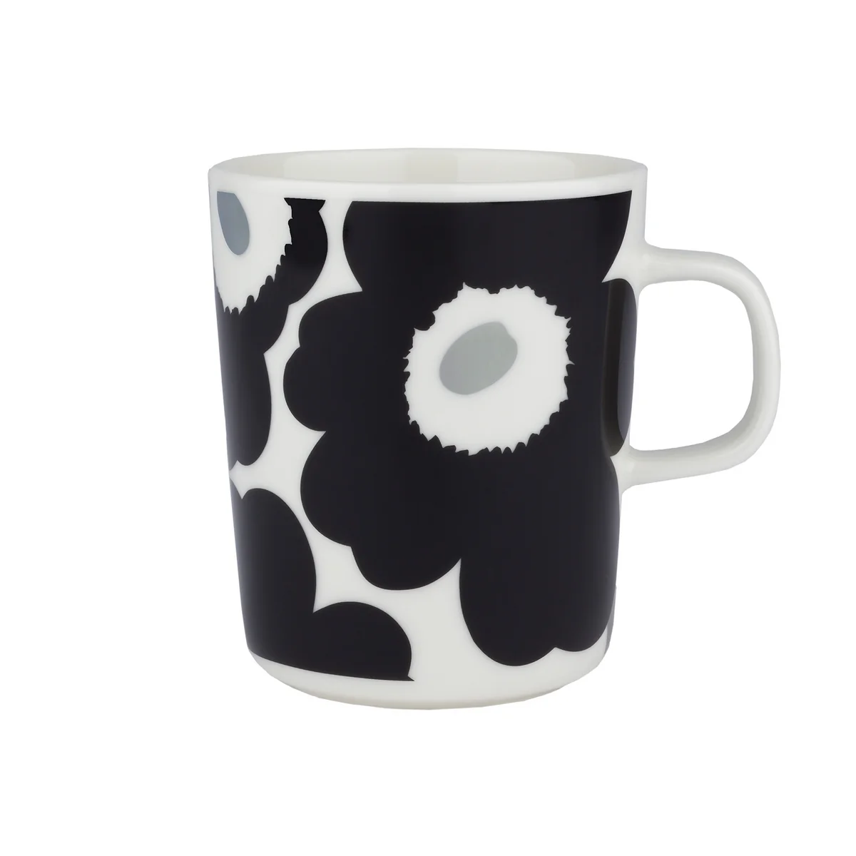 La tasse fait partie de la série de vaisselle Oiva. Les lignes simples de la série mettent en valeur le motif floral. D'une contenance de 200 ml, 250 ml ou 400 ml, la tasse Unikko de la série Oiva peut contenir un grand café, mais bien sûr aussi un thé ou toute autre boisson. Le fabricant finlandais fabrique cette tasse design en grès. Marimekko Marimekko Marimekko