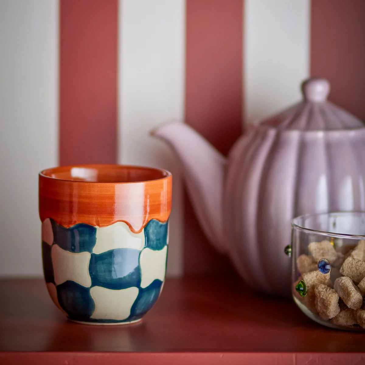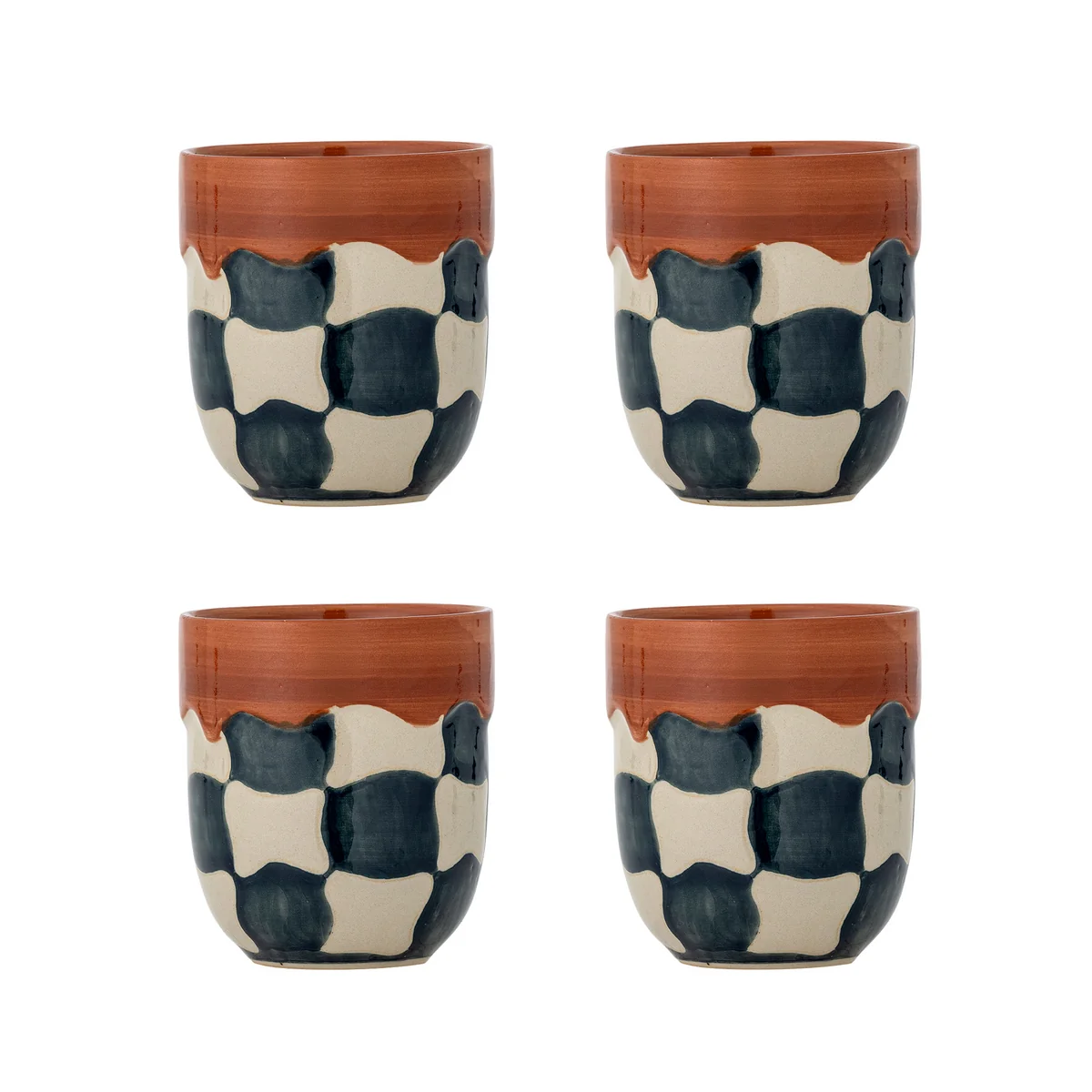 Bloomingville - Check Tasse 375 ml, bleu (set de 4)