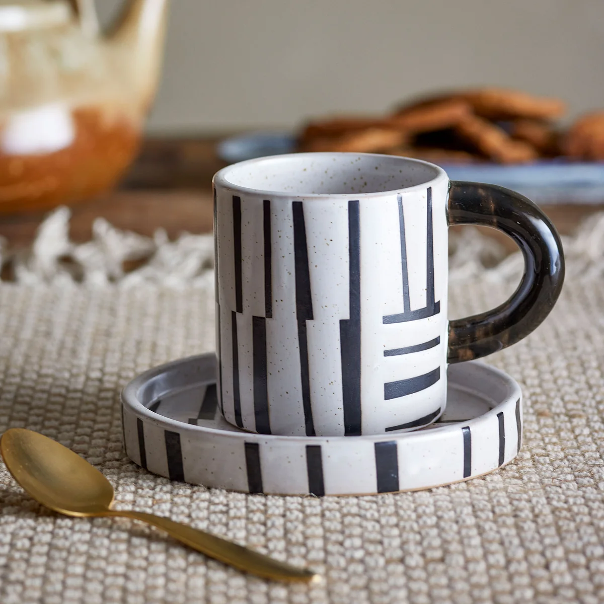 Bloomingville - Frankie Tasse avec soucoupe, noir / blanc (2pcs)