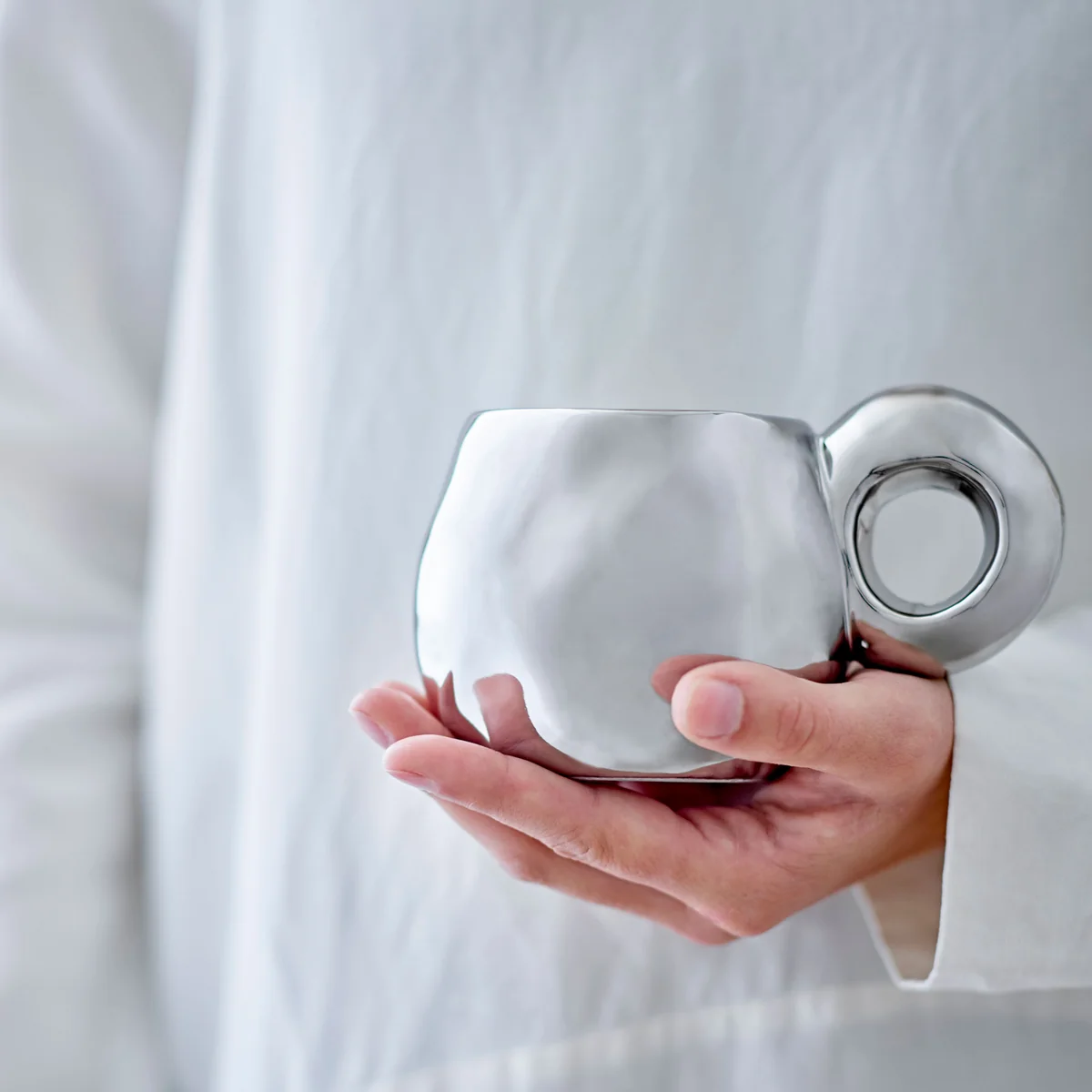 La tasse Shine se distingue par sa surface galvanisée qui lui confère une élégante finition chromée. La grande anse ronde assure non seulement une manipulation confortable, mais apporte également une touche de design décorative. Que ce soit sur l'étagère à tasses ou lors de la dégustation d'un café, cette tasse apporte un éclat moderne dans chaque cuisine.