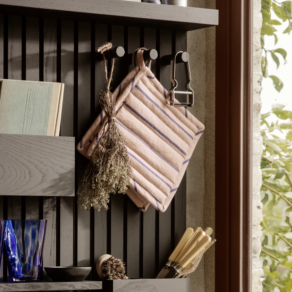 Les maniques Hale de Ferm Living protègent vos doigts des casseroles et poêles chaudes de manière élégante. Ils sont remplis de polyester recyclé et ont une boucle pour pouvoir être accrochés à un crochet mural dans la cuisine, par exemple.