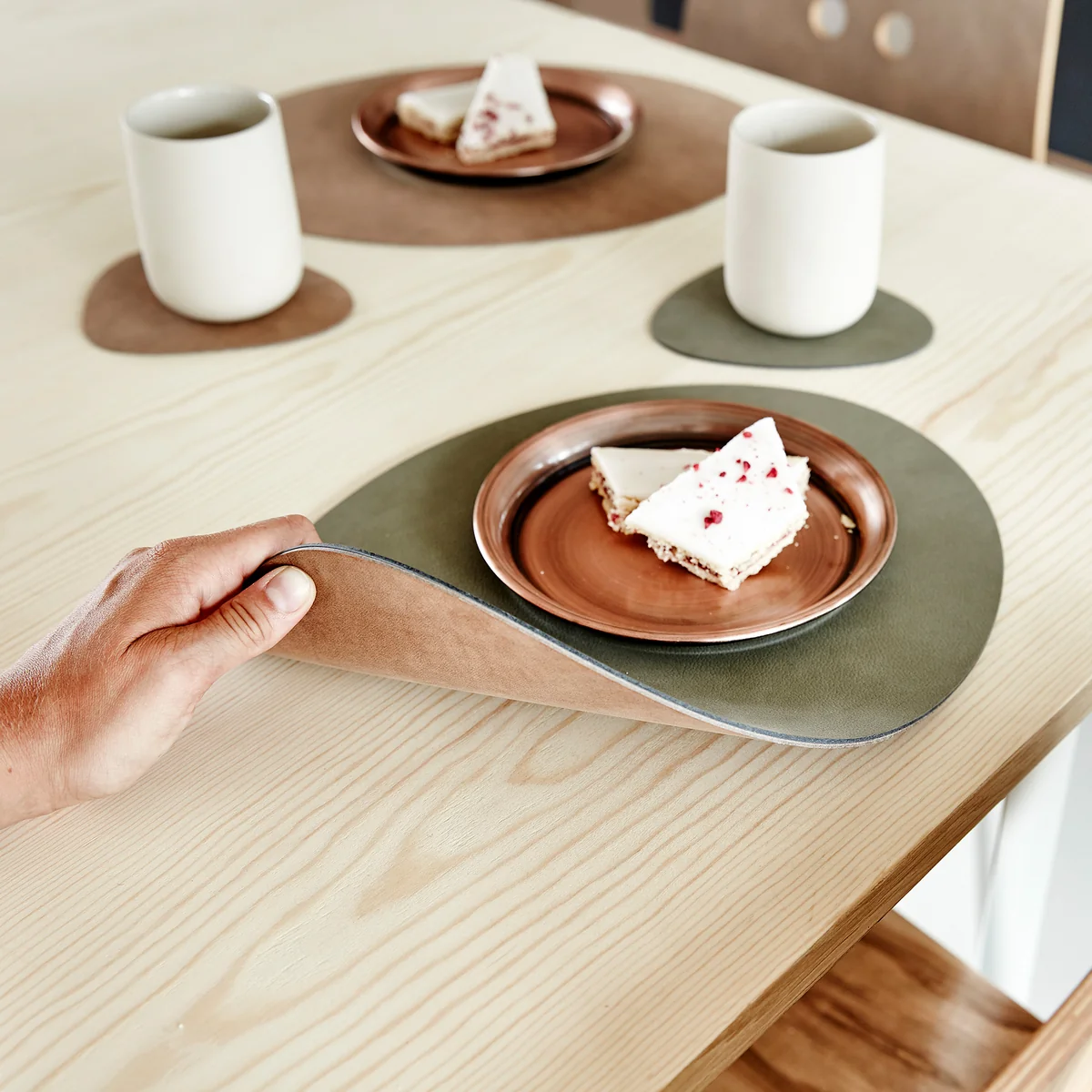 Le Curve L Double est réversible et présente une surface en cuir et une couleur différentes des deux côtés. Cela permet de varier les plaisirs au quotidien. Selon l'envie et l'humeur, il est possible de choisir un côté des sets de table chics et de retourner simplement le support.