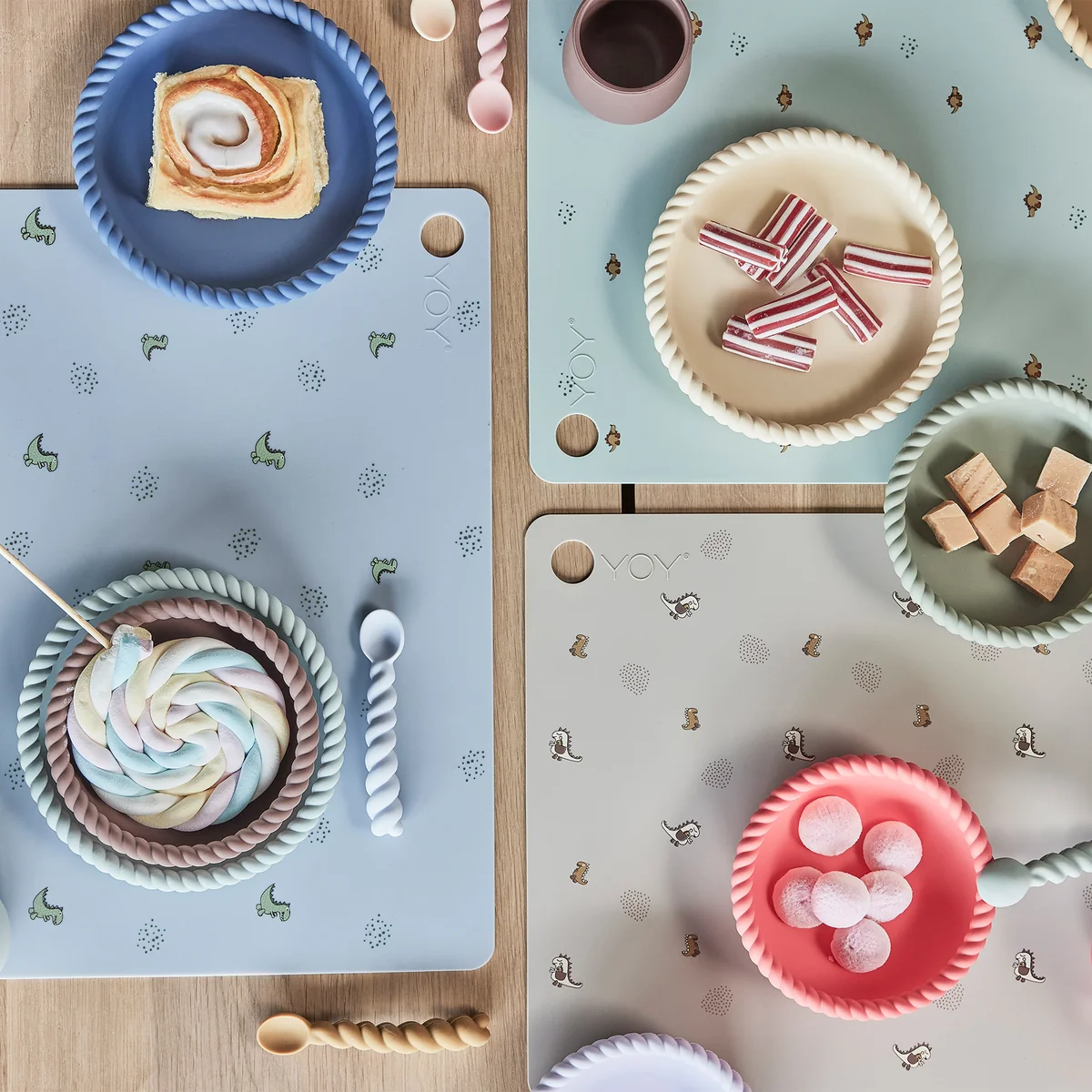 OYOY - Set de table Dino, Theo, 45 x 34 cm, pale blue