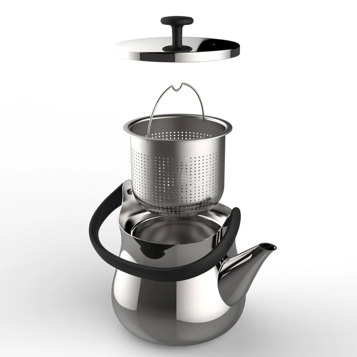 Cha est composée d’acier inoxydable 18 / 10 avec un bouton de couvercle en résine thermoplastique pour protéger les mains de la chaleur. La théière moderne a une capacité de 900 ml. Le sol de la bouilloire / théière Cha en acier magnétique convient pour toutes les sources de chaleur, y compris les cuisinières à induction.