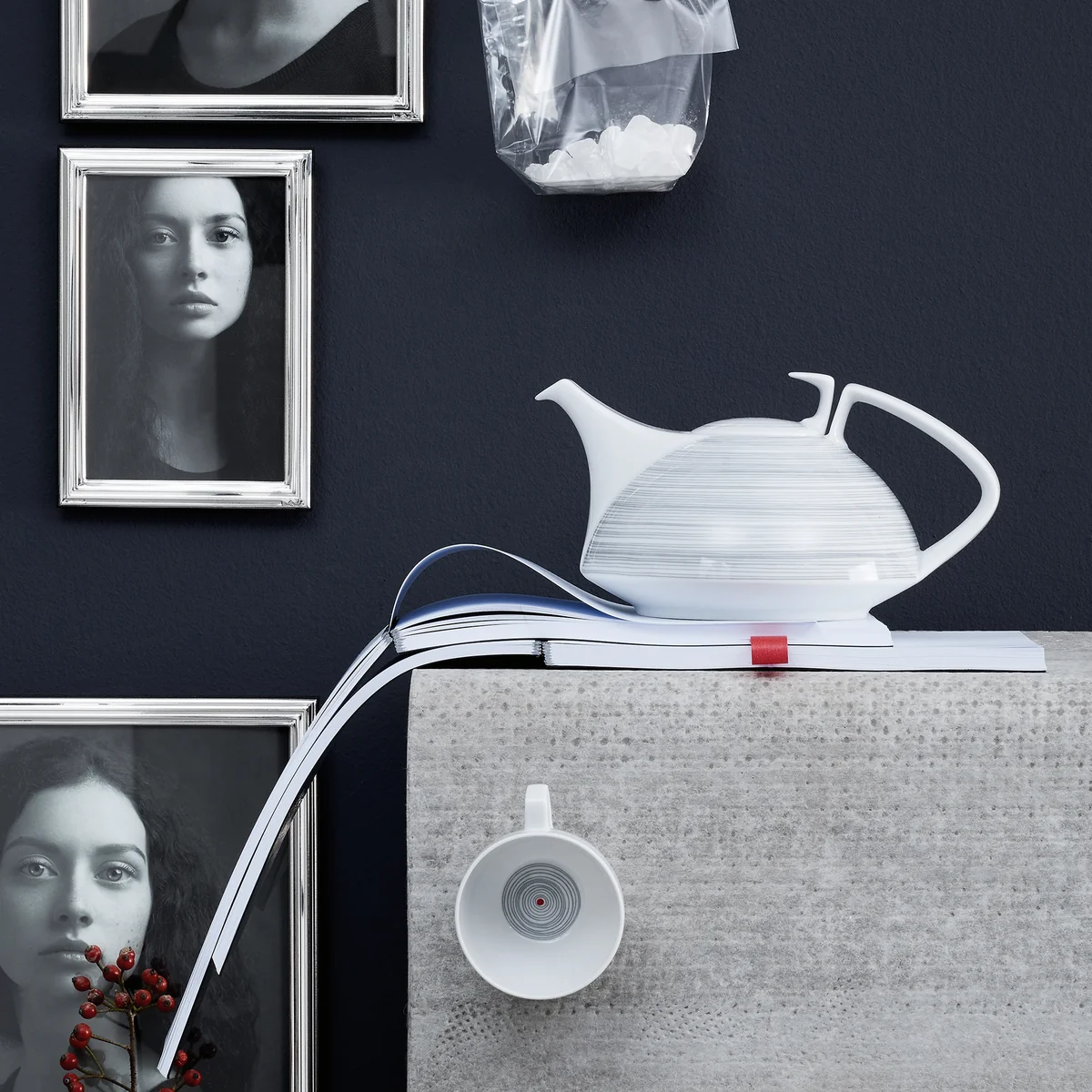 En plus de la version blanche classique, la théière est également disponible avec le décor Stripes 2. 0 pour l'anniversaire du Bauhaus. Le motif à rayures est un hommage à Walter Gropius et à son travail au Bauhaus. De fines lignes filigranes sur porcelaine blanche caractérisent le décor et créent un nouveau look moderne et urbain qui attire le regard sur chaque petit-déjeuner ou table basse.
