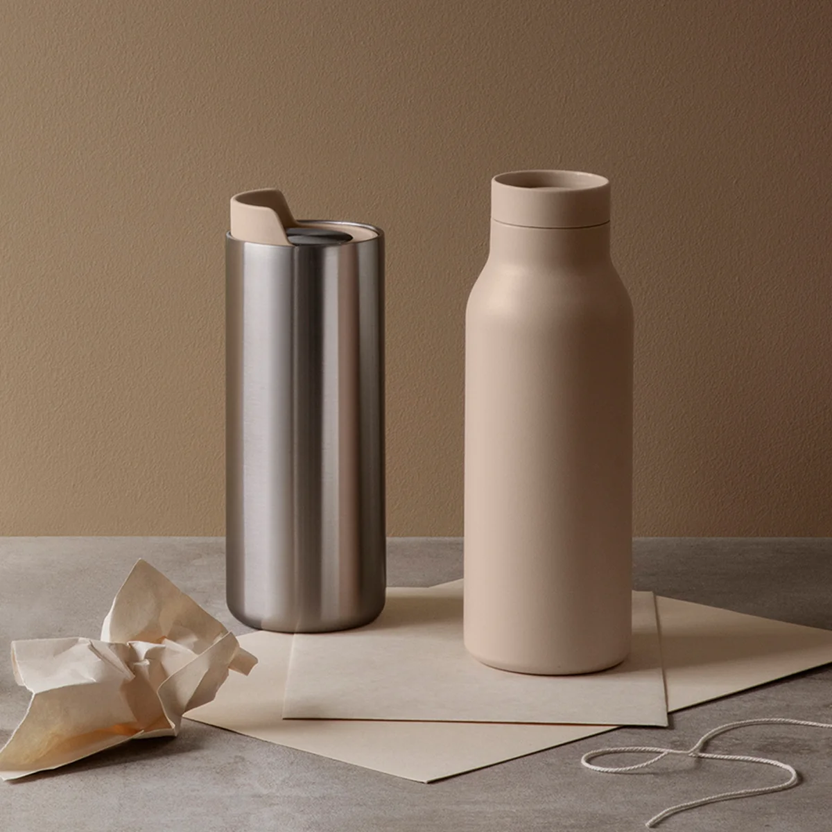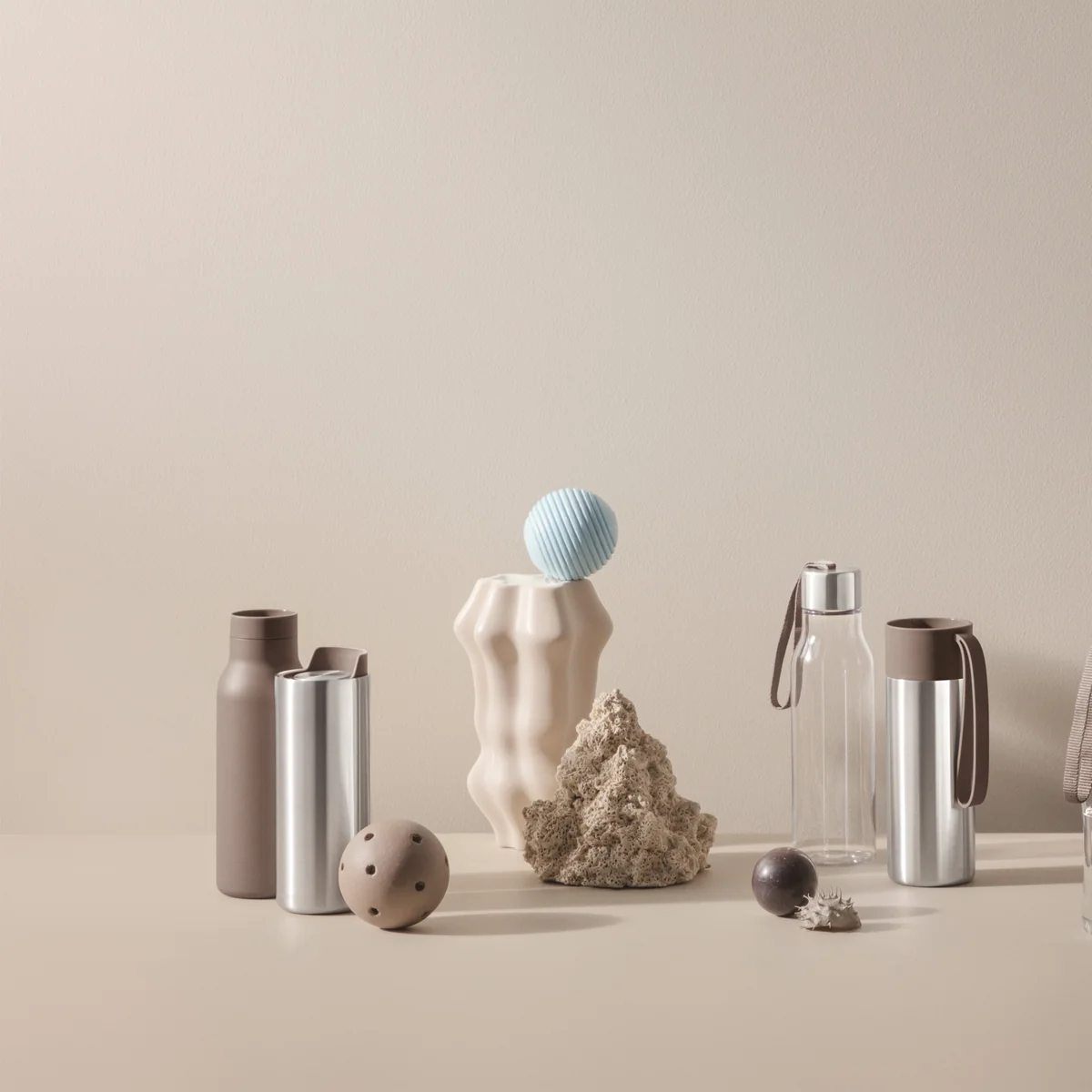 Pour un look entièrement scandinave, la bouteille peut être Urban bouteille thermos avec le gobelet isotherme Nordic Kitchen , la gourde en verre et le pot isotherme Rise de Eva Solo .