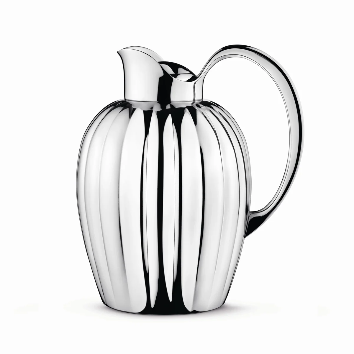 Les lignes élancées du corps du Georg Jensen Bernadotte thermos sont un clin d'œil aux anciens designs de couverts en argent, mais le thermos n'en est pas moins élégant et intemporel. Bernadotte Elle convient aussi bien à une table royalement dressée qu'à une simple table de petit-déjeuner. Le pot chauffant est un appareil de maintien au chaud noble et très durable qui ne révèle pas immédiatement sa fonction grâce à son apparence élégante.