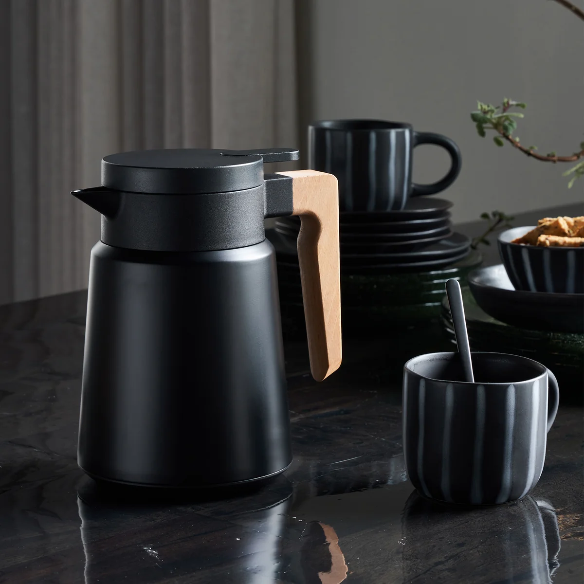 La cafetière verte Cole de House Doctor est parfaite pour servir vos thés préférés. Avec une capacité d'un litre, elle est également idéale pour le café du petit déjeuner ou pour une réunion de café entre amis l'après-midi. L'acier inoxydable dans un élégant ton vert mat et la poignée en bois de hêtre se marient harmonieusement et confèrent à la théière un aspect intemporel et décontracté. Cole Elle s'adapte tout simplement à tous les services de table - ou tout simplement à votre tasse préférée, lorsque vous souhaitez vous accorder une pause café bien méritée.