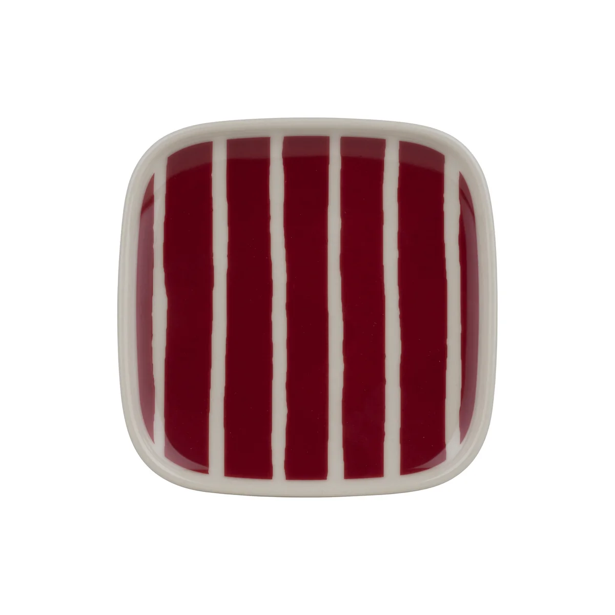 Le motif Piccolo a été créé en 1953 par Vuokko Eskolin-Nurmesniemi et fait partie des motifs à rayures les plus emblématiques de la marque. La forme de l'assiette provient de la série Oiva, conçue par Sami Ruotsalainen.