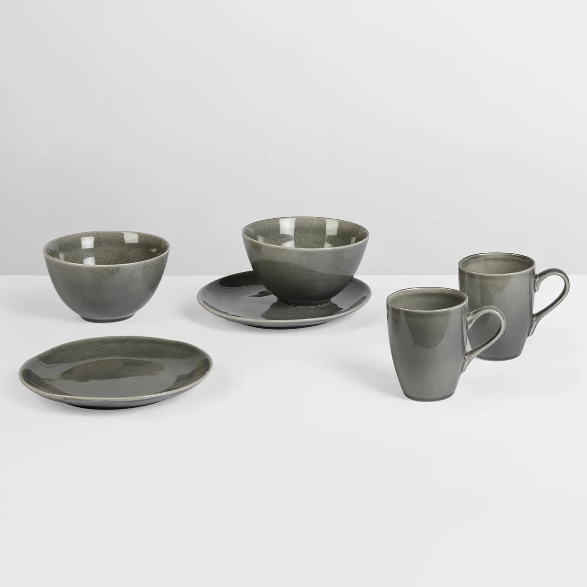 Fabriquée en faïence de qualité supérieure et affinée avec un émail réactif, chaque pièce de vaisselle présente une structure qui lui est propre. La combinaison de tons gris et bleus rappelle les jours de pluie sur la côte scandinave - calme, puissant et naturellement beau. Comme chaque pièce est finalisée à la main, aucune ne se ressemble : les petites différences de forme, de couleur et d'émail rendent chaque pièce spéciale.