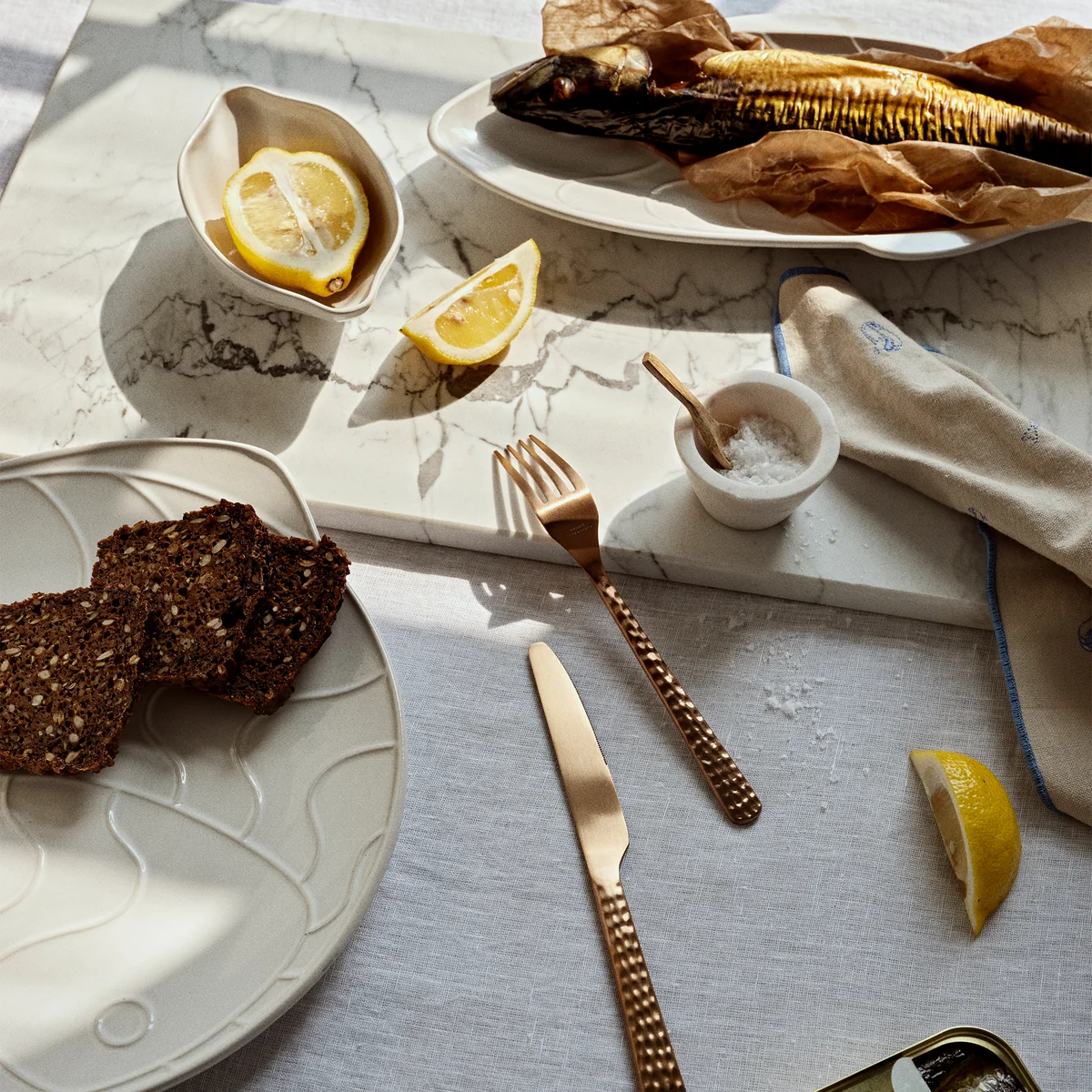 Le site Pesce vaisselle de Broste Copenhagen fait entrer l'air de la mer, le bruit et l'odeur de l'été dans le salon. Fabriquée à la main en pierre émaillée, la vaisselle dispose de la silhouette d'un poisson. Avec leur forme arrondie, les assiettes apportent une touche de charme à la table de la salle à manger. Les assiettes peuvent également être utilisées à des fins décoratives. Sur la table à manger, ils sont parfaits pour servir des biscuits, des tranches de citron ou des desserts. Les Pesce Les plats sont disponibles en différents modèles.