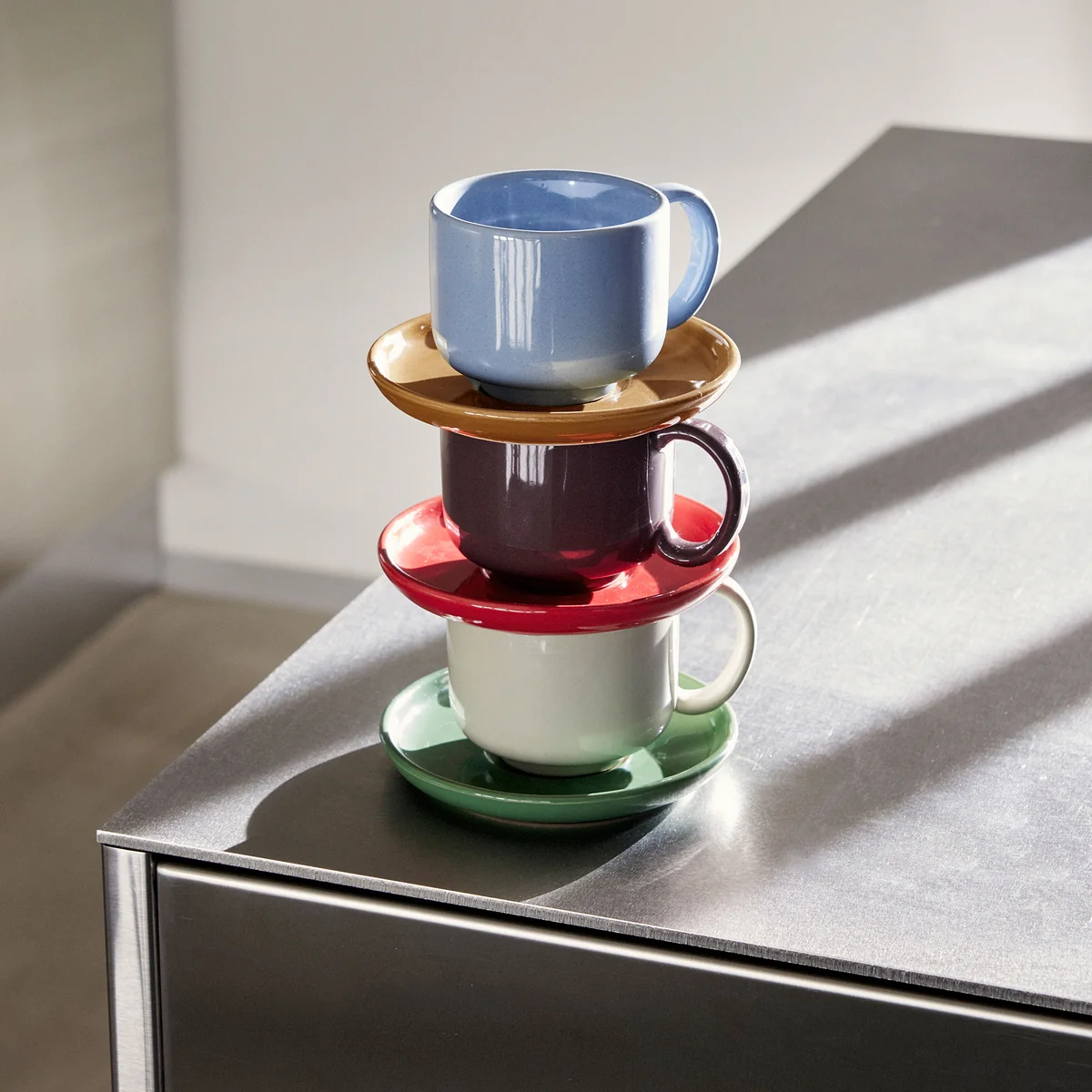 Le Hübsch Interior Amare Tasse avec soucoupe est une combinaison élégante et pratique d'une tasse et d'une soucoupe, qui se distingue par son design unique et moderne. Typiquement, elle a des lignes épurées, un toucher agréable et une surface lisse et mate qui la distingue des tasses ordinaires.