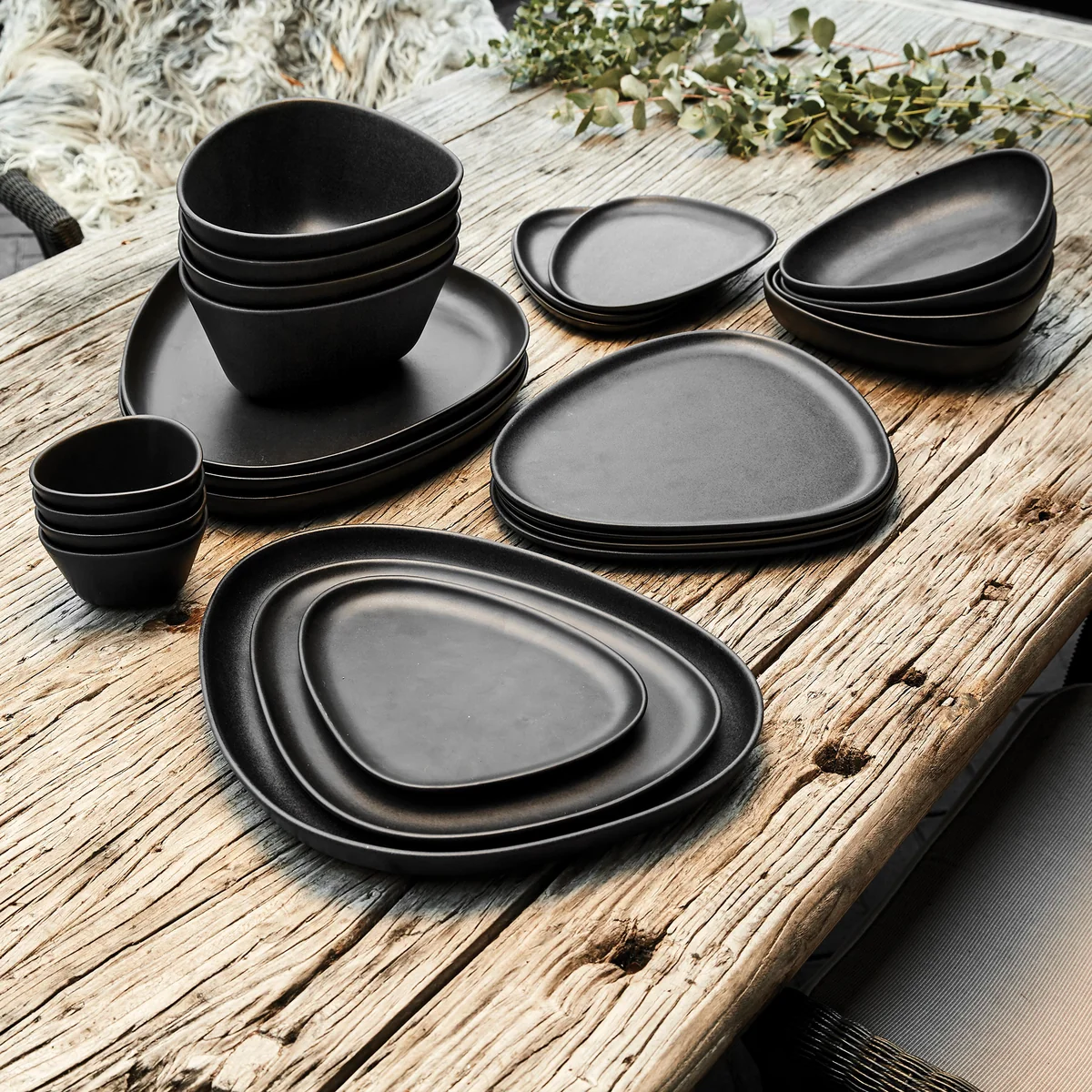 Les assiettes sont disponibles en différentes tailles, ce qui permet de les utiliser pour tout type d'aliments. L'assiette profonde convient aux soupes, les assiettes peu profondes aux petits-déjeuners, déjeuners et dîners et le plateau est optimal pour le service et la présentation. Les assiettes sont fabriquées en grès robuste, ce qui les rend faciles à nettoyer au lave-vaisselle.
