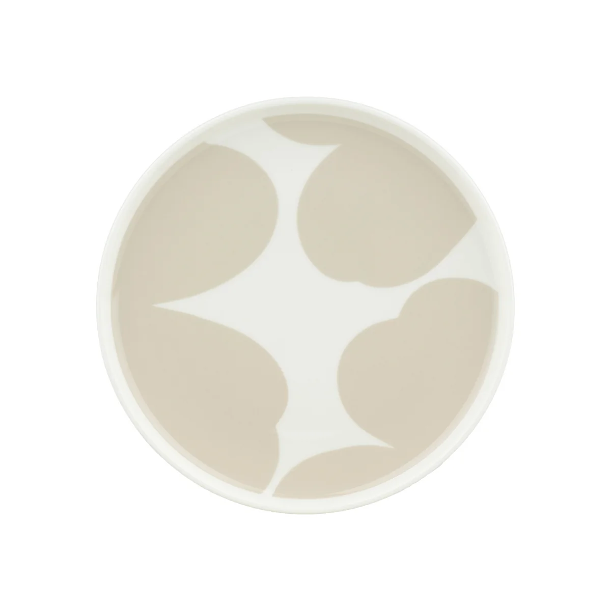 L'assiette Oiva Iso Unikko de la maison finlandaise Marimekko . L'assiette en faïence blanche passe au lave-vaisselle, au four, au micro-ondes et au congélateur.