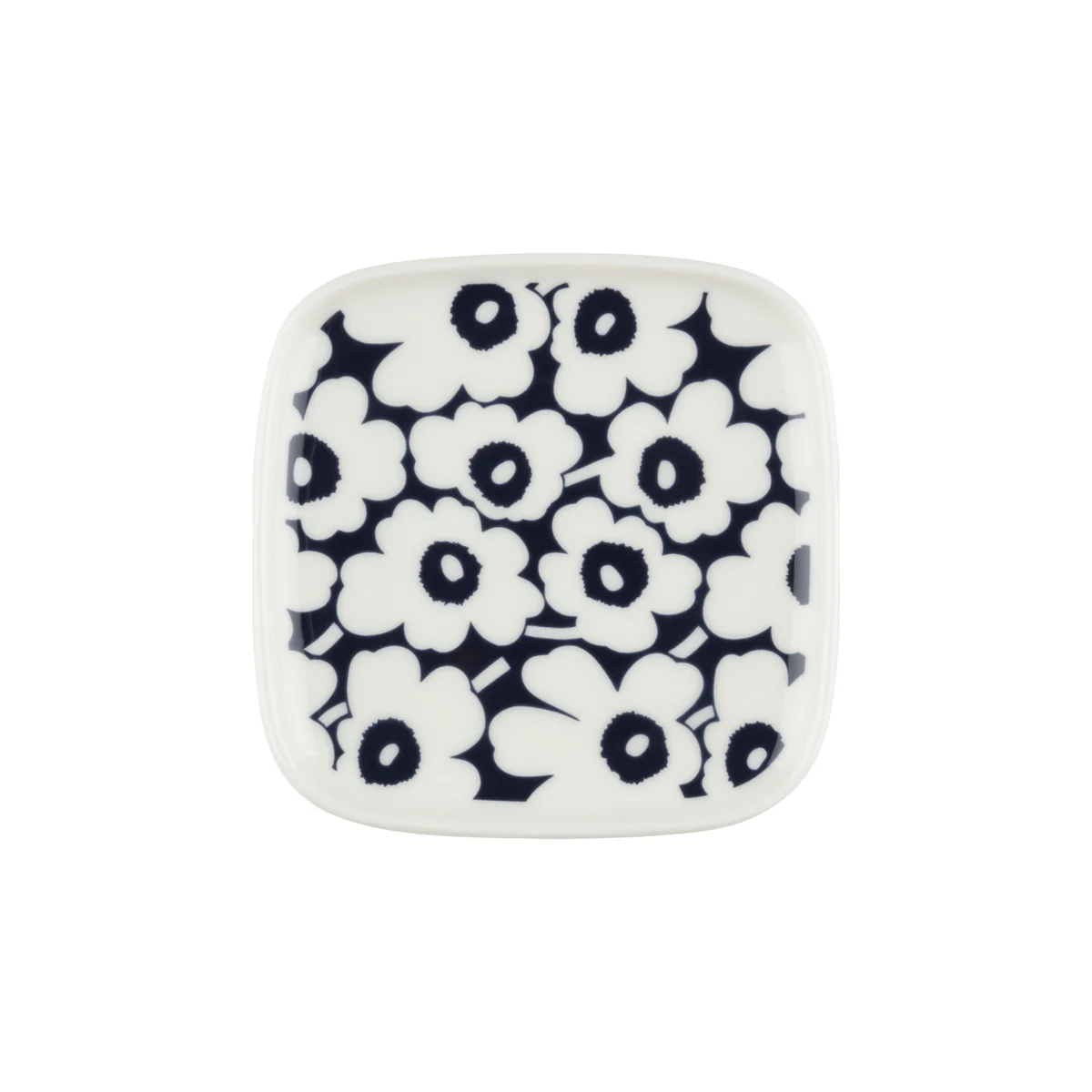 Marimekko - Oiva Pikkuinen Unikko Assiette, 10 x 10 cm, bleu foncé / blanc (60th Anniversary Collection)