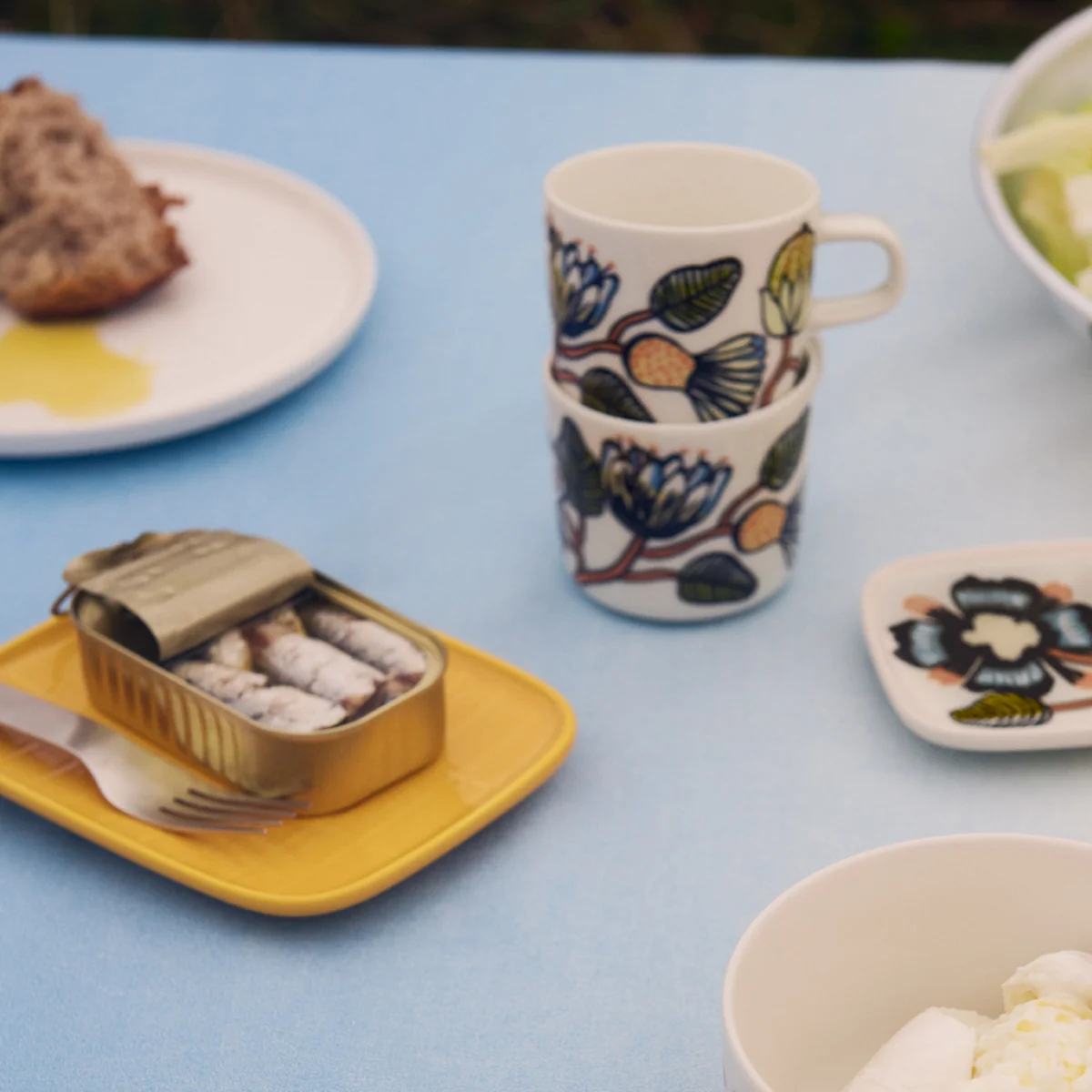 Le motif en relief Tiiliskivi -reflète la foi de Ratia dans la beauté du quotidien. Ce plateau confère ainsi un caractère particulier au service ou à la prise de repas quotidiens et attire les regards sur la table à manger. Bien entendu, le plateau peut également être utilisé à des fins décoratives.
