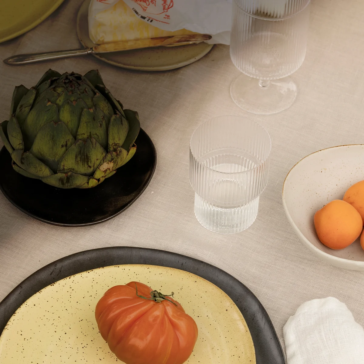 Les ondulations verticales du verre ne sont pas seulement esthétiques, elles assurent également une prise en main ferme, de sorte que les verres sont faciles à manipuler. Ferm Living verres tiennent particulièrement bien dans la main. Pour gagner de la place dans l'armoire de cuisine, les verres peuvent être empilés les uns sur les autres. Ripple Les verres s'empilent facilement les uns sur les autres.