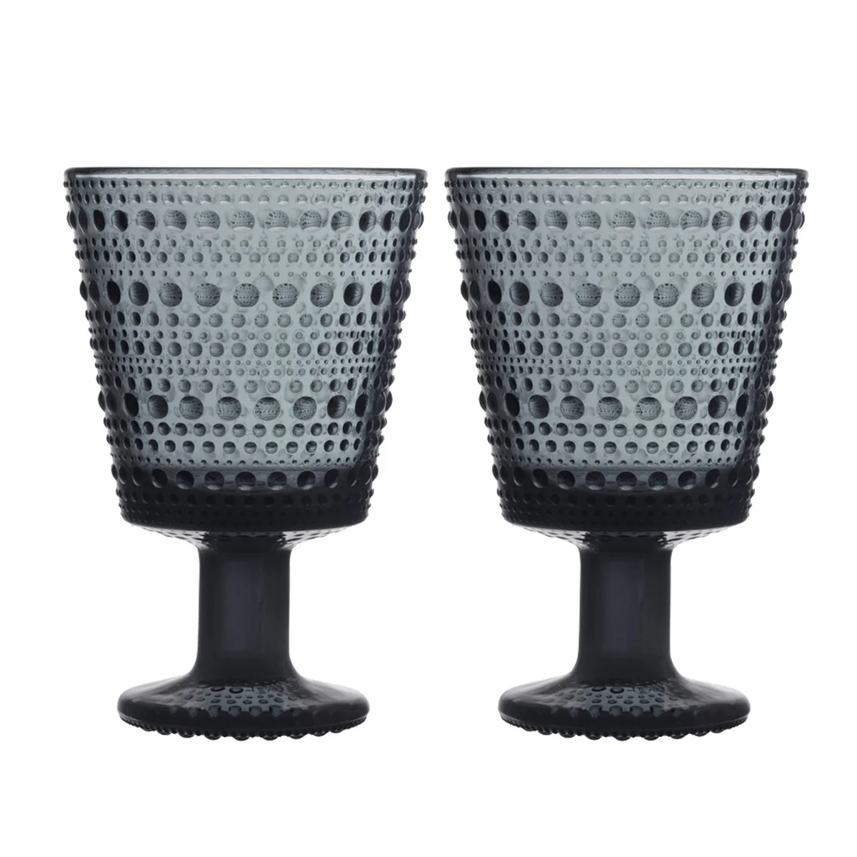 Le Kastehelmi verre à pied d'Iittala séduit par son relief en forme de goutte emblématique, conçu par le designer Oiva Toikka, qui cherchait à l'époque une solution pour dissimuler les joints pressés du verre. Le design de Kastehelmi (qui signifie "goutte de rosée" en finnois) consiste en un relief circulaire de gouttes de verre qui rappellent la rosée scintillant sous le soleil du matin. Sur les verres à pied, le motif attire l'attention sur chaque table de salle à manger. Ils conviennent pour les boissons froides et pour un usage quotidien.