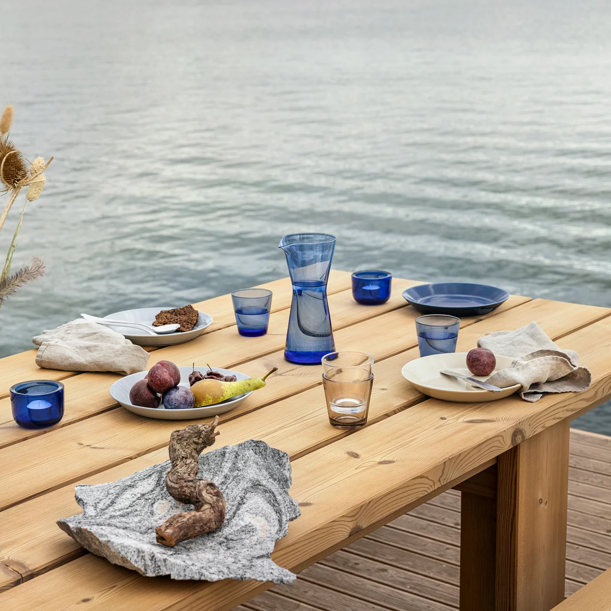 La gamme Kartio -est élégante, mais suffisamment durable pour un usage quotidien. Elle comprend des verres, des carafes et des bols, tous disponibles en plusieurs couleurs différentes et en verre transparent. Toutes les couleurs proposées par Iittala sont disponibles.