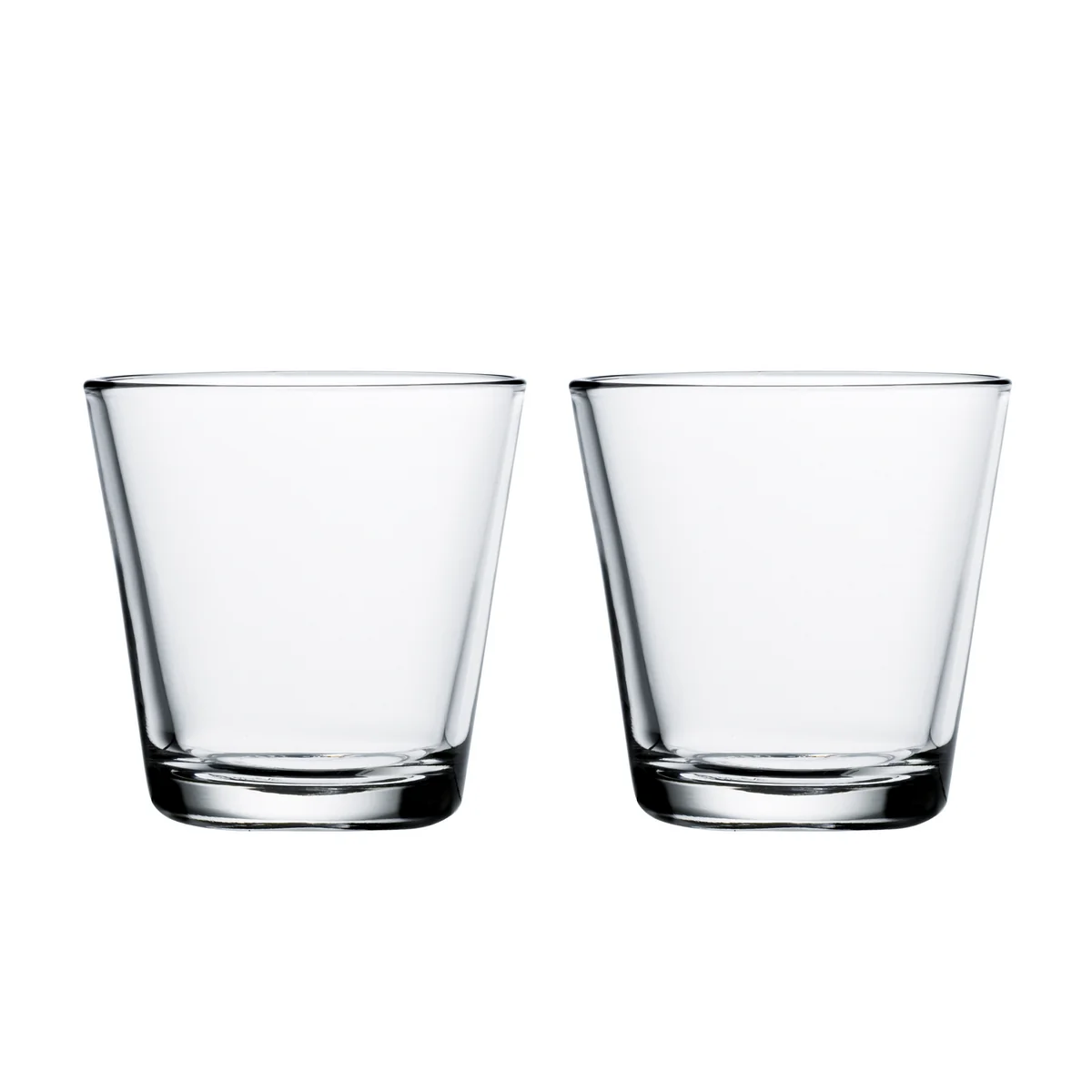La gamme Kartio -est élégante, mais suffisamment durable pour un usage quotidien. Elle comprend des verres, des carafes et des bols, tous disponibles en plusieurs couleurs différentes et en verre transparent. Toutes les couleurs proposées par Iittala sont disponibles.