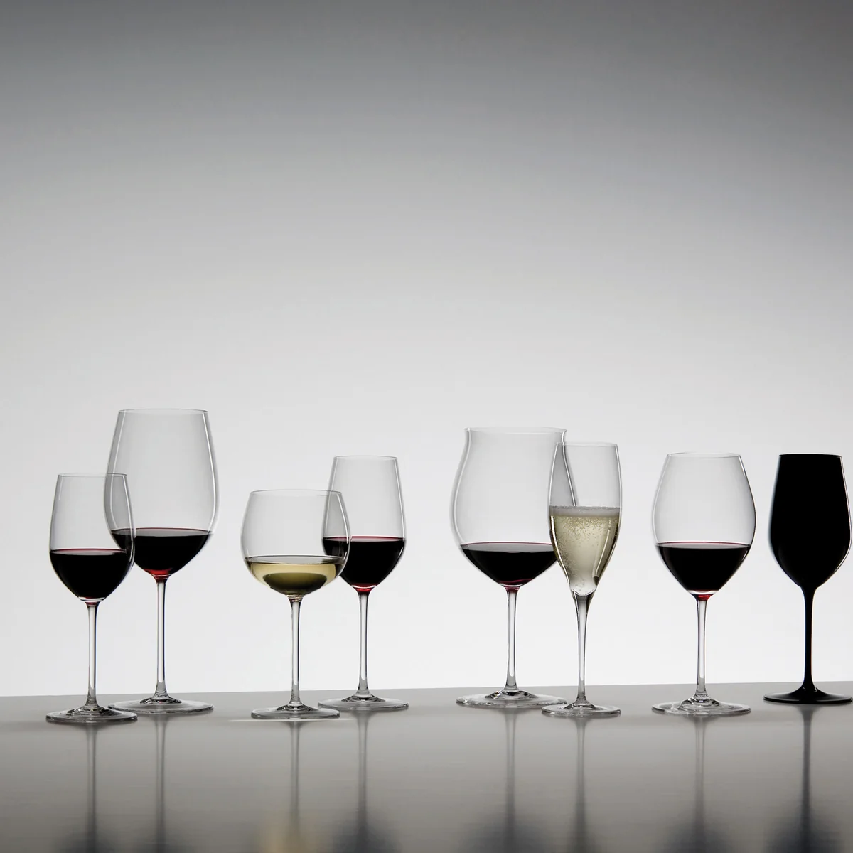 Outre les verres à vin pour différents vins rouges et blancs tels que le Chablis, Riesling, Reserva, vins de Bourgogne, de Bordeaux et autres, la série comprend aussi des verres pour le mousseux, l'eau, la grappa, le xérès et la téquila, le Champagne, le cognac, le riesling, la liqueur, le whisky et le Martini. Le verre Blind Tasting peint en noir avec du cobalt et du manganèse est un véritable accroche-regard. La couleur du vin ne peut pas être vue à travers le verre opaque, et la personne qui le déguste peut ainsi se concentrer entièrement sur les arômes et les saveurs de celui-ci.