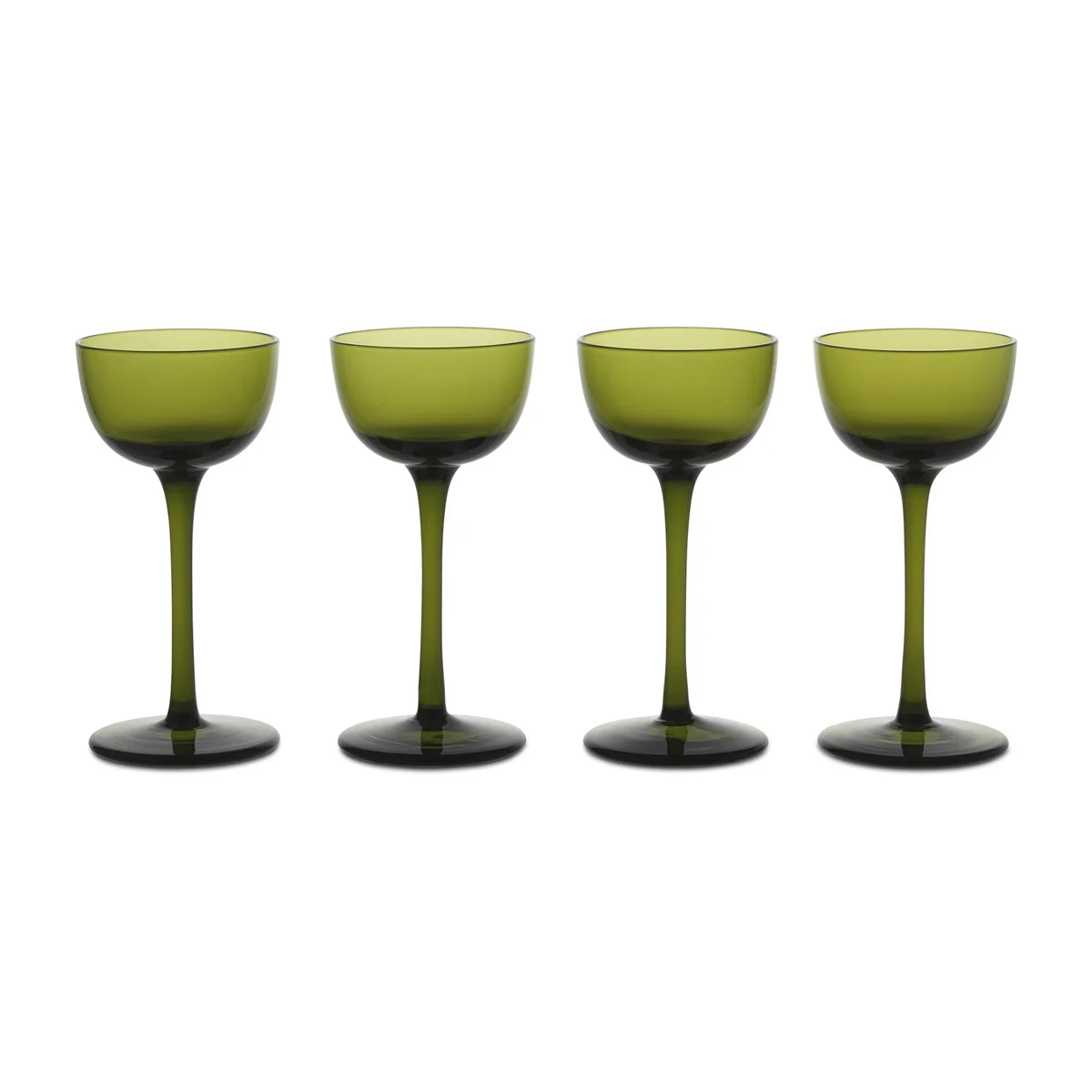 Les Host verres à liqueur de la maison Ferm Living ont suscité l'enthousiasme avec leurs silhouettes épurées et leurs délicates tiges. Le set de 4 pièces en verre soufflé à la bouche décore chaque table en un clin d'œil grâce à son élégance classique.