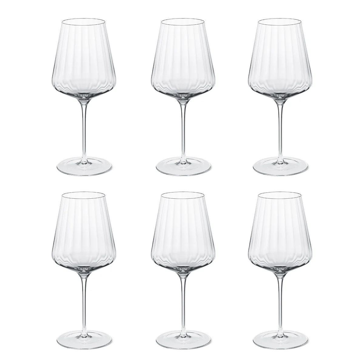 Le Bernadotte Verre à vin rouge de Georg Jensen est un verre à vin moderne en cristal sans plomb. Le verre séduit par ses rainures à la manière de l'Art Déco, qui rendent la dégustation du vin plus exclusive. Grâce aux avantages optiques des rainures, le verre à vin rouge peut être saisi de manière optimale, même lorsque le vin est frais. Les Bernadotte (450 ml) sont disponibles en set de 6 verres.