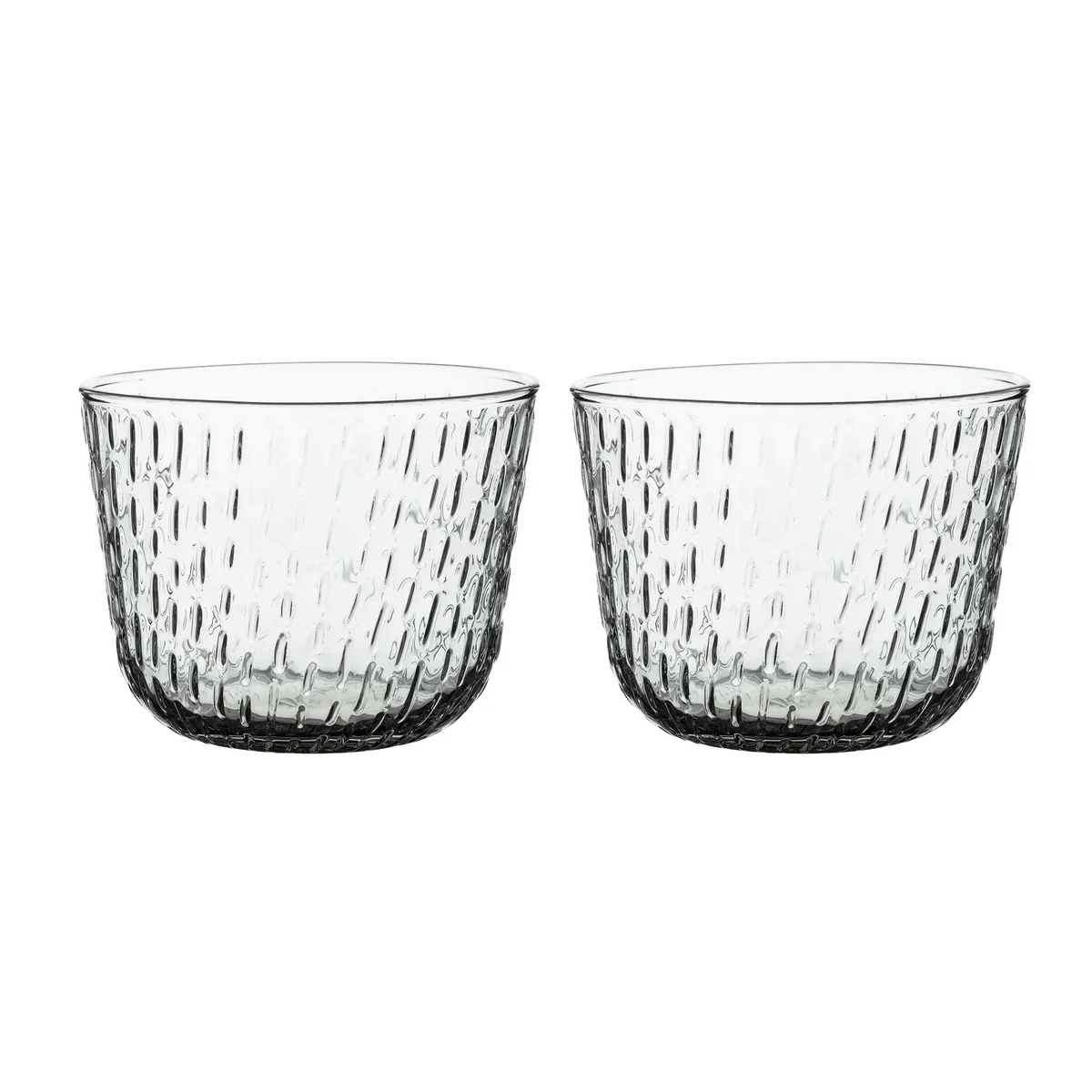 Le Syksy verre à boire de Marimekko est fabriqué en verre soufflé à la bouche. La série Syksy (Automne) série de verres, conçue par Matti Klenell, poursuit l'exploration de la nature et des phénomènes météorologiques, familiers dans l'art de l'impression de Marimekko . Le thème général de la nouvelle série est celui des formes de la pluie d'automne, d'un doux bruissement à des averses puissantes et pénétrantes.