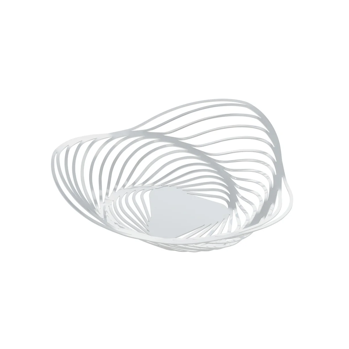 Inspiré par la coquille à spirale du mollusque « Nautilus », le designer Adam Cornish a conçu la corbeille Trinity pour Alessi.