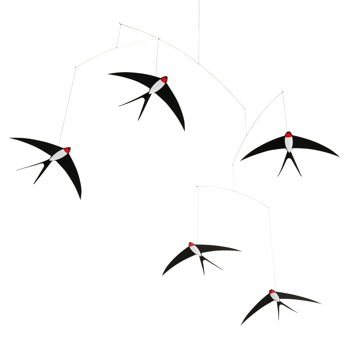 Le vol élégant et acrobatique des hirondelles est désormais disponible sous forme de mobile : Flensted Mobiles fait entrer les petits oiseaux dans la chambre des enfants avec le mobile Swallow .