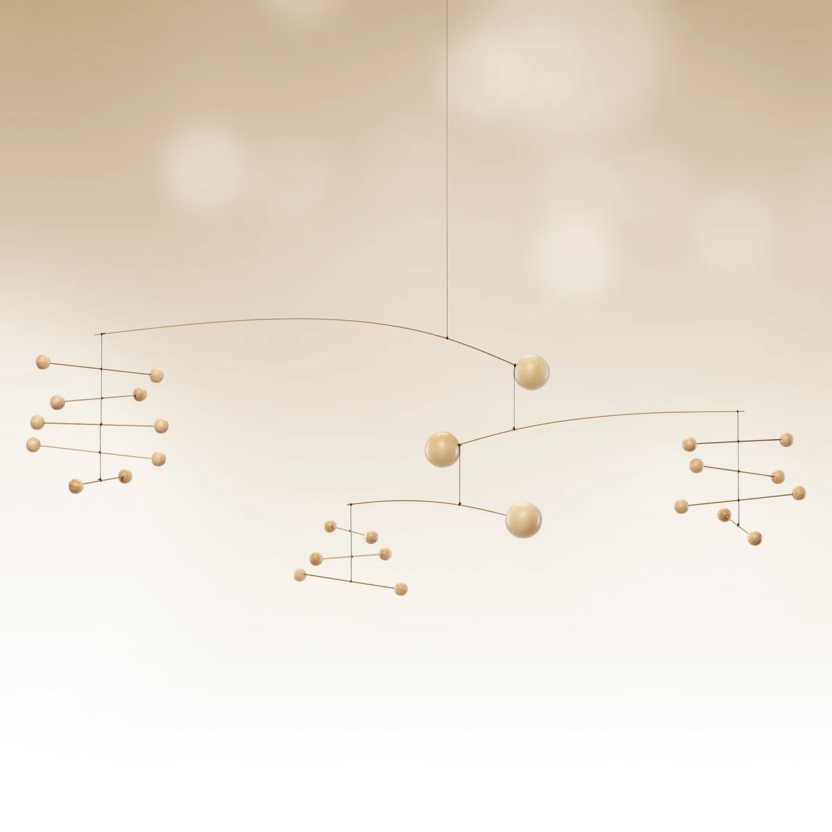 Aujourd'hui et depuis 50 ans déjà, le nom de la famille danoise Flensted est synonyme de conception de mobiles innovants et de grande qualité, qui enrichissent l'espace de manière captivante. Le mobile Symphony in 3 Movements a été conçu par Ole Flensted, le fils du fondateur de l'entreprise Christian. Fabriqué en bois, chaque mobile est assemblé et équilibré à la main afin qu'il puisse ensuite déployer toute son atmosphère au moindre souffle de vent.