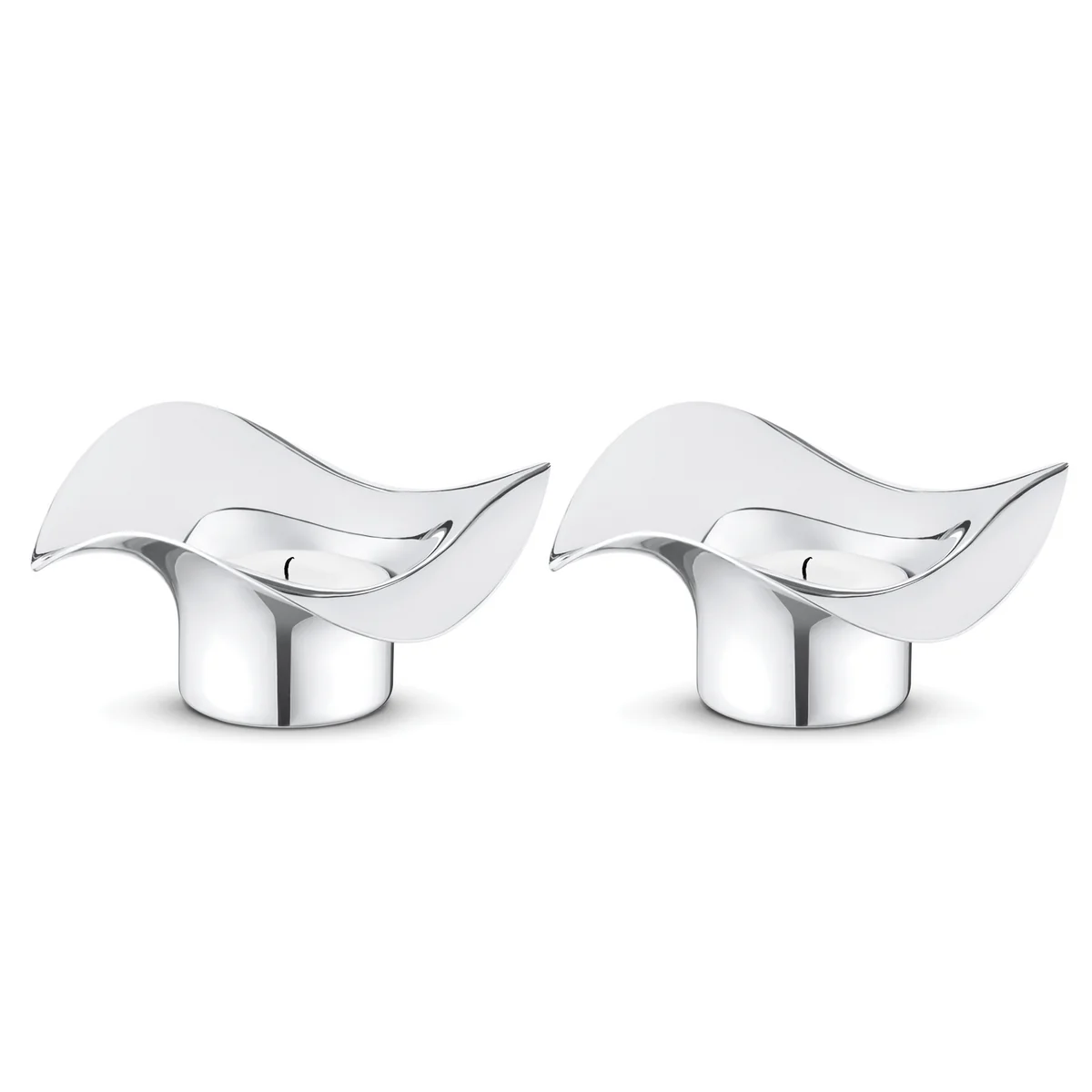 Support pour bougies à chauffe-plat avec bord ondulé de la Cobra collection, conçu par Constantin Wortmann. La forme unique confère au design quelque chose de poétique tout en restant élégant. Les porte-bougies à réchaud en acier inoxydable brillant sont disponibles en set de 2 et complètent chaque décoration de table avec élégance et quelque chose d'inattendu.