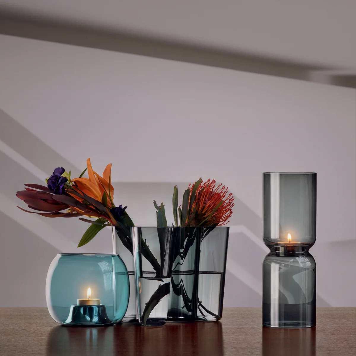 L'extérieur du photophore Kaasa offert dans les couleurs classiques d’iittala est en verre soufflé à la bouge. Par conséquent, les couleurs de Kaasa se combinent parfaitement avec d’autres produits du fabricant finlandais. Le designer a choisi l’acier inoxydable comme matériau intérieur qui est robuste mais a quand même un aspect extrêmement noble au travers de la surface polie. Grâce au insert amovible en acier inoxydable conçu pour des bougies à chauffe-plat standard, Kaasa est facile à nettoyer.