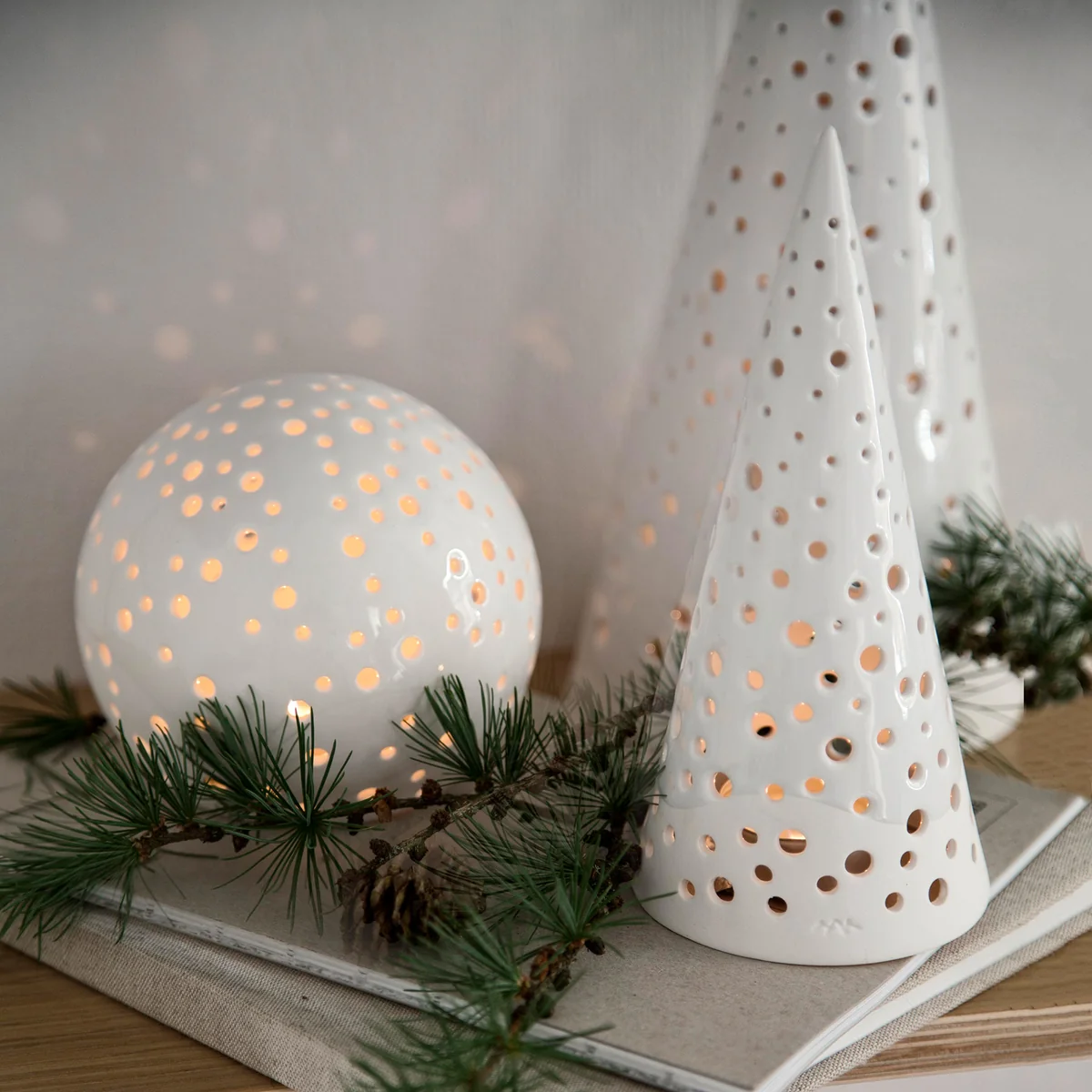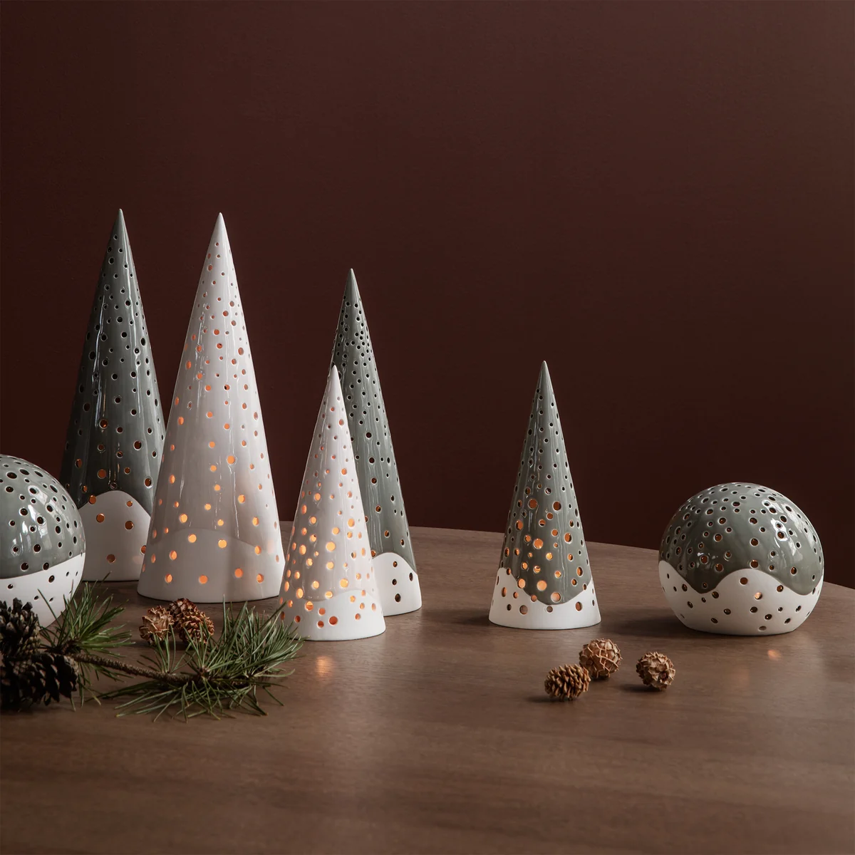 Les lampes à réchaud de la série Nobili de Kähler Design rappellent par leur forme de cône clair les profondes forêts de sapins de Scandinavie. Lorsque la lumière de la bougie à réchaud brûle, les petits points brillent et vous rappellent un sapin avec des bougies sur chaque branche.