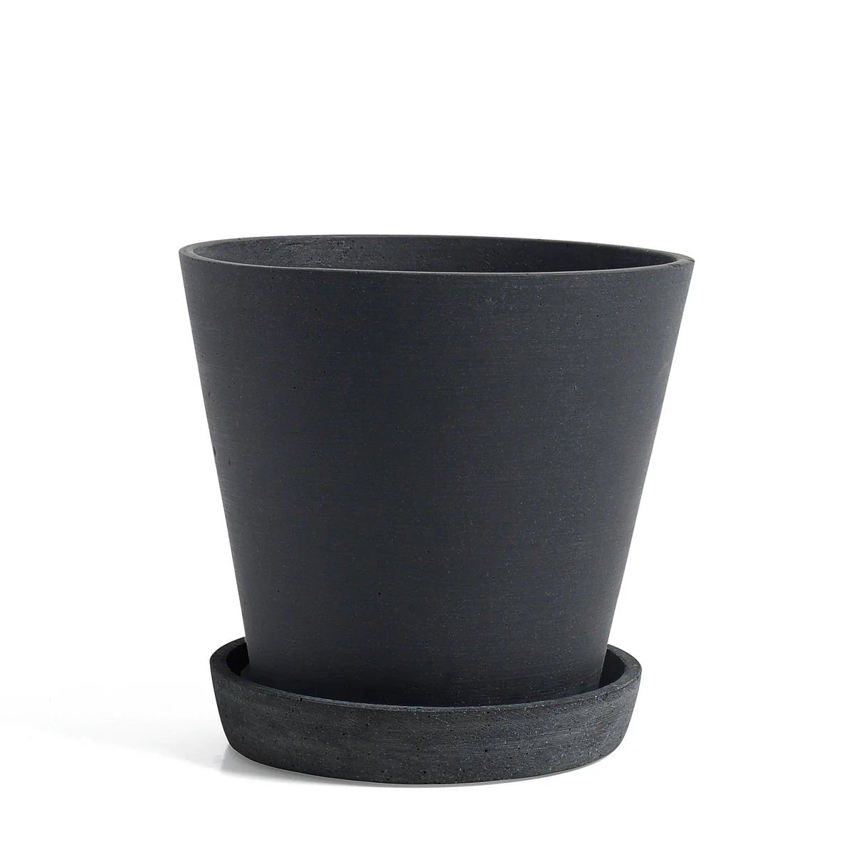 HAY fabrique le pot de fleurs en polystone, un plastique hydrofuge et résistant aux intempéries et aux éraflures. Le matériau spécial donne au pot de fleurs avec soucoupe l'impression qu'il est en pierre polie.