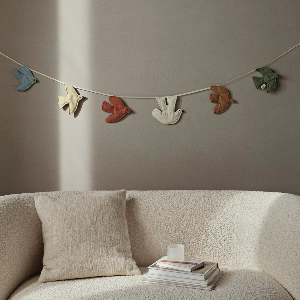Cette guirlande en coton 100 % bio avec un rembourrage en polyester recyclé reflète l'engagement de Ferm Living pour la durabilité tout en garantissant la durabilité et la douceur. Les oiseaux sont soigneusement fabriqués en utilisant des matériaux et des méthodes respectueux de l'environnement, ce qui en fait un choix écologique pour votre maison.