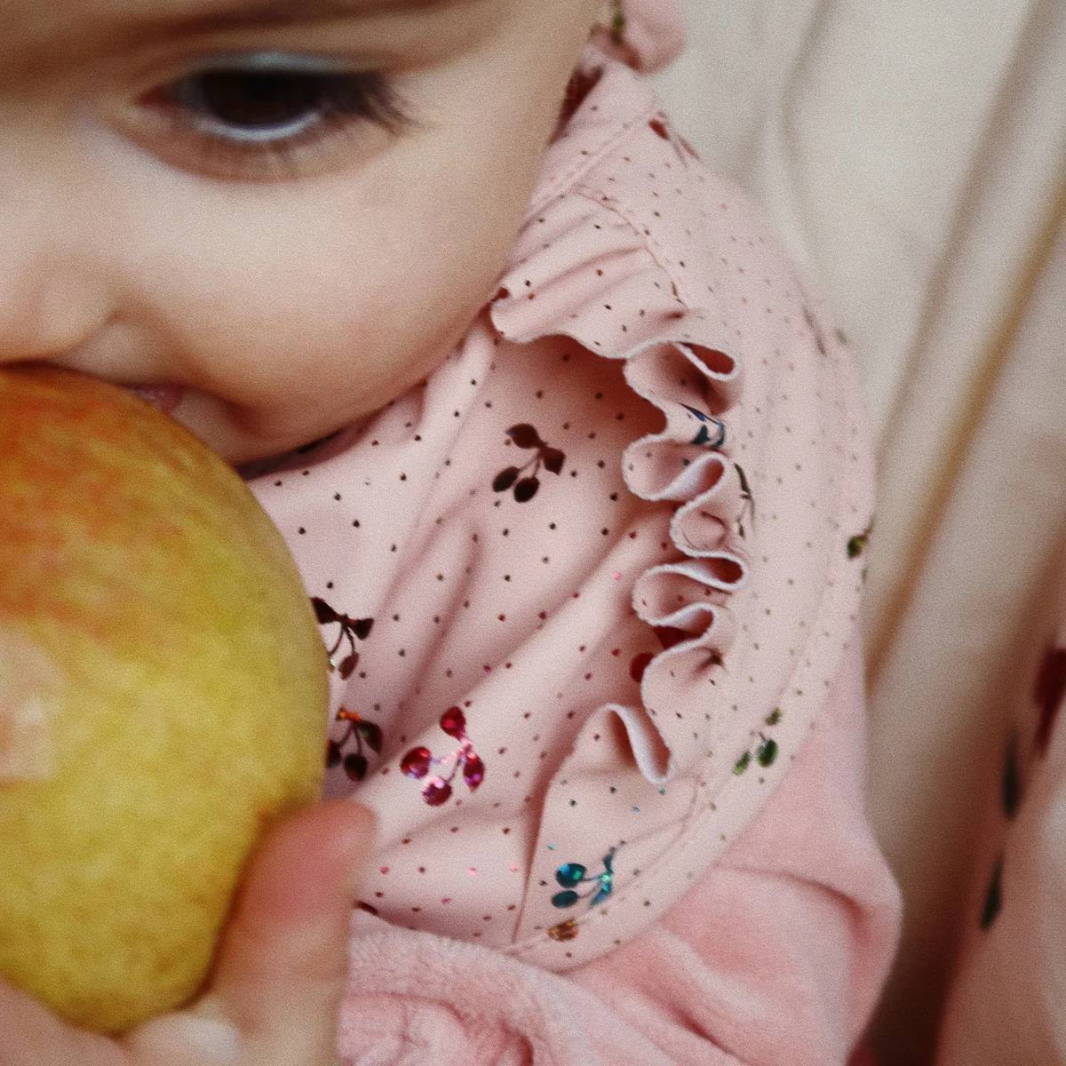Le bavoir à volants de Konges Sløjd rend l'heure du repas élégante et sans stress. Avec leurs charmants détails à volants et leur surface imperméable, ces bavoirs sont parfaits pour garder les vêtements de l'enfant propres tout en apportant une touche de flair à sa tenue.