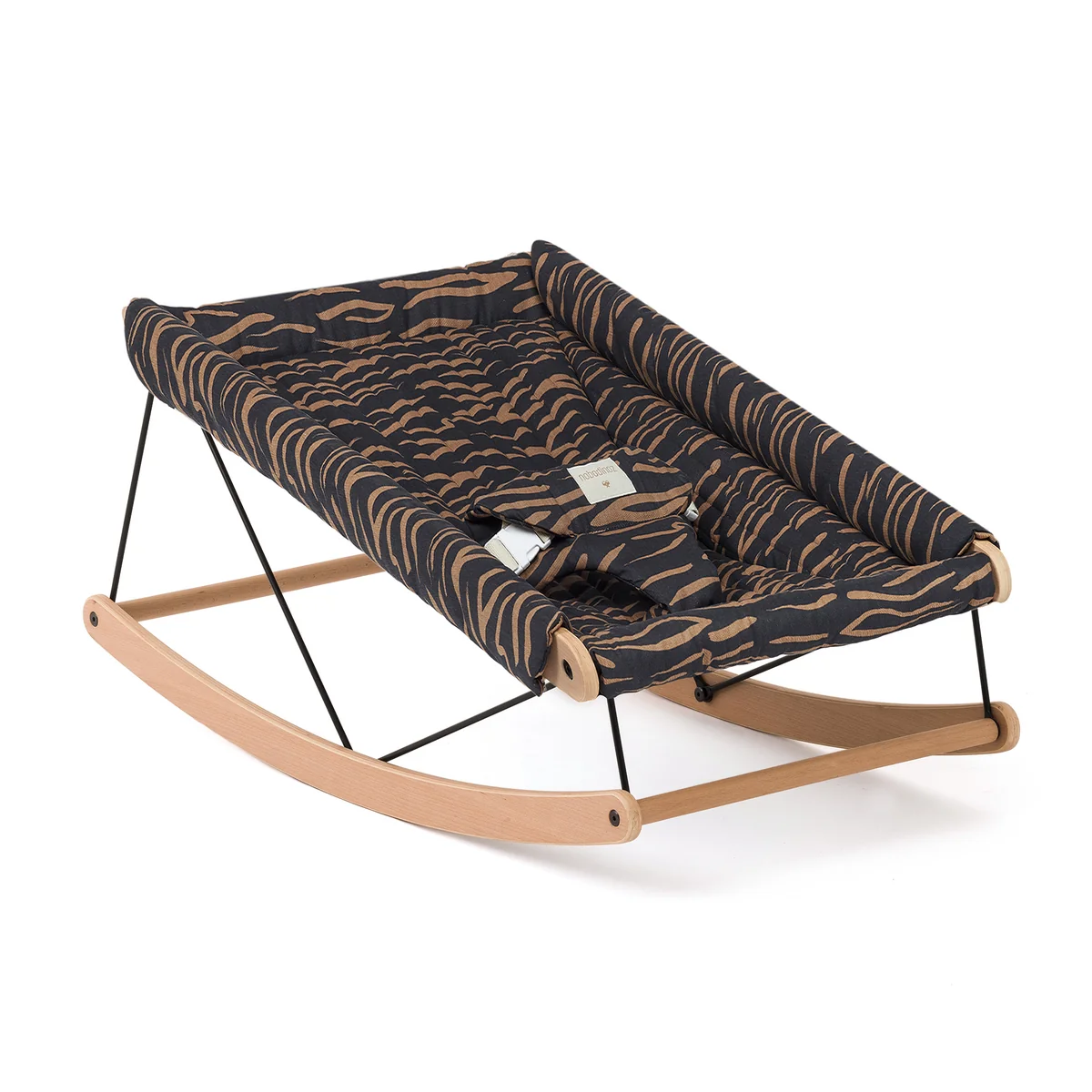 Le nodo est fabriqué Growing Green Le transat de Nobodinoz est fabriqué en bois de hêtre massif. La housse en coton organique est amovible grâce à une fermeture éclair et peut être nettoyée à la main.