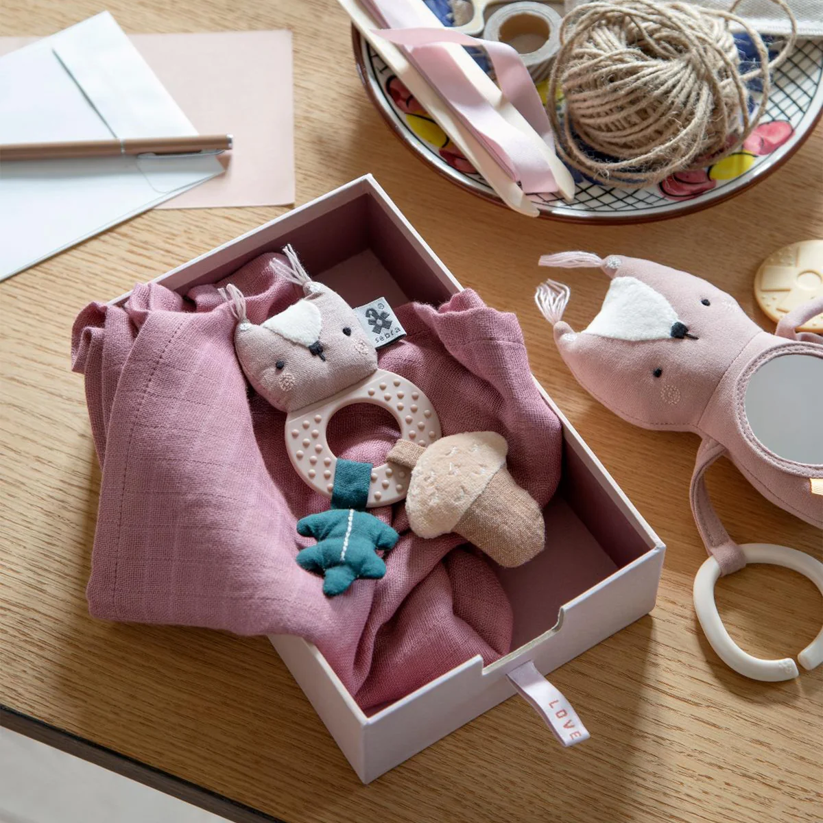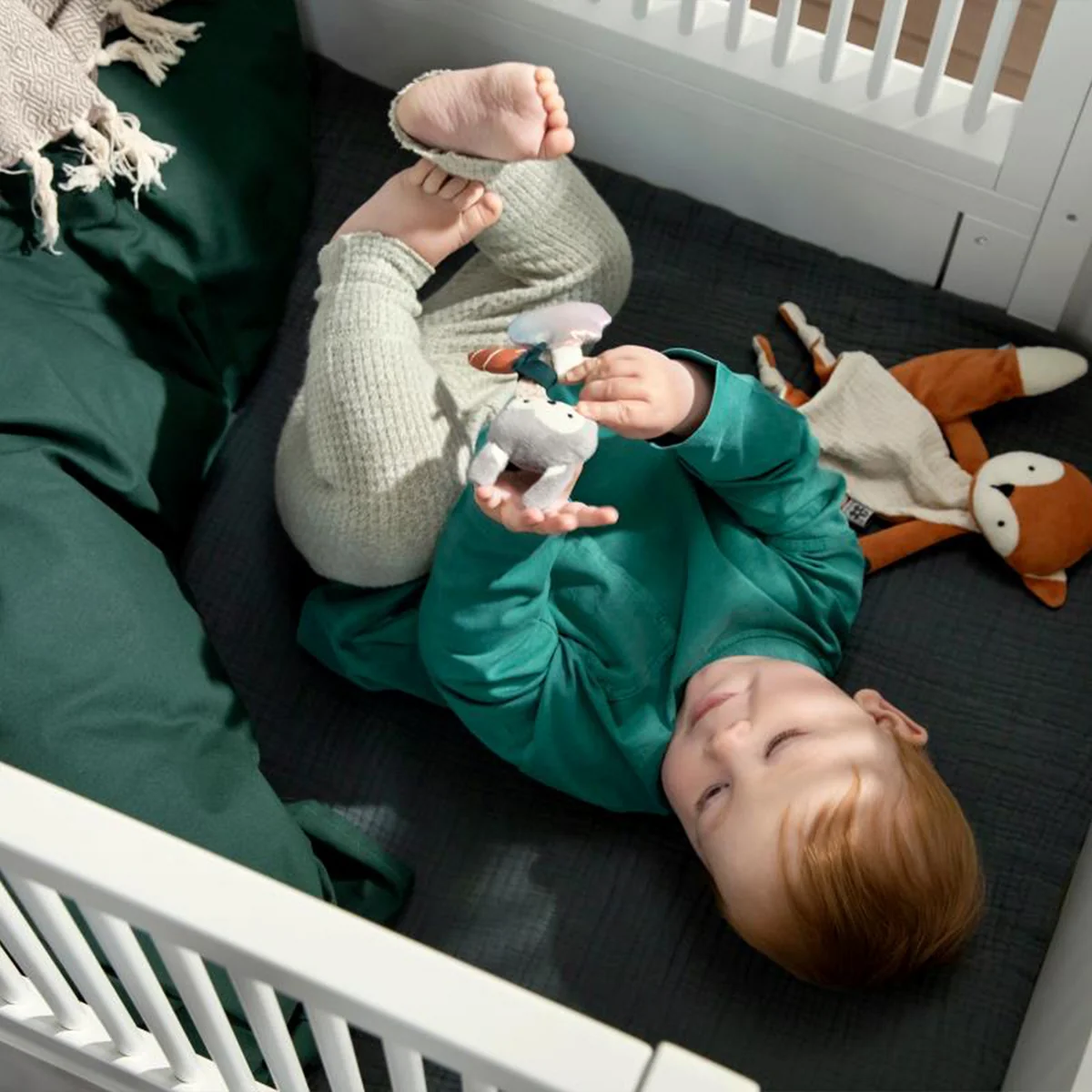 Le hochet d'activité de Sebra se distingue par l'encouragement des motifs et des sens très particuliers. Sur l'anneau du hochet se trouvent différents éléments d'activité. Fabriqué à partir de matériaux recyclés, le hochet s'adapte parfaitement aux petites mains des enfants.