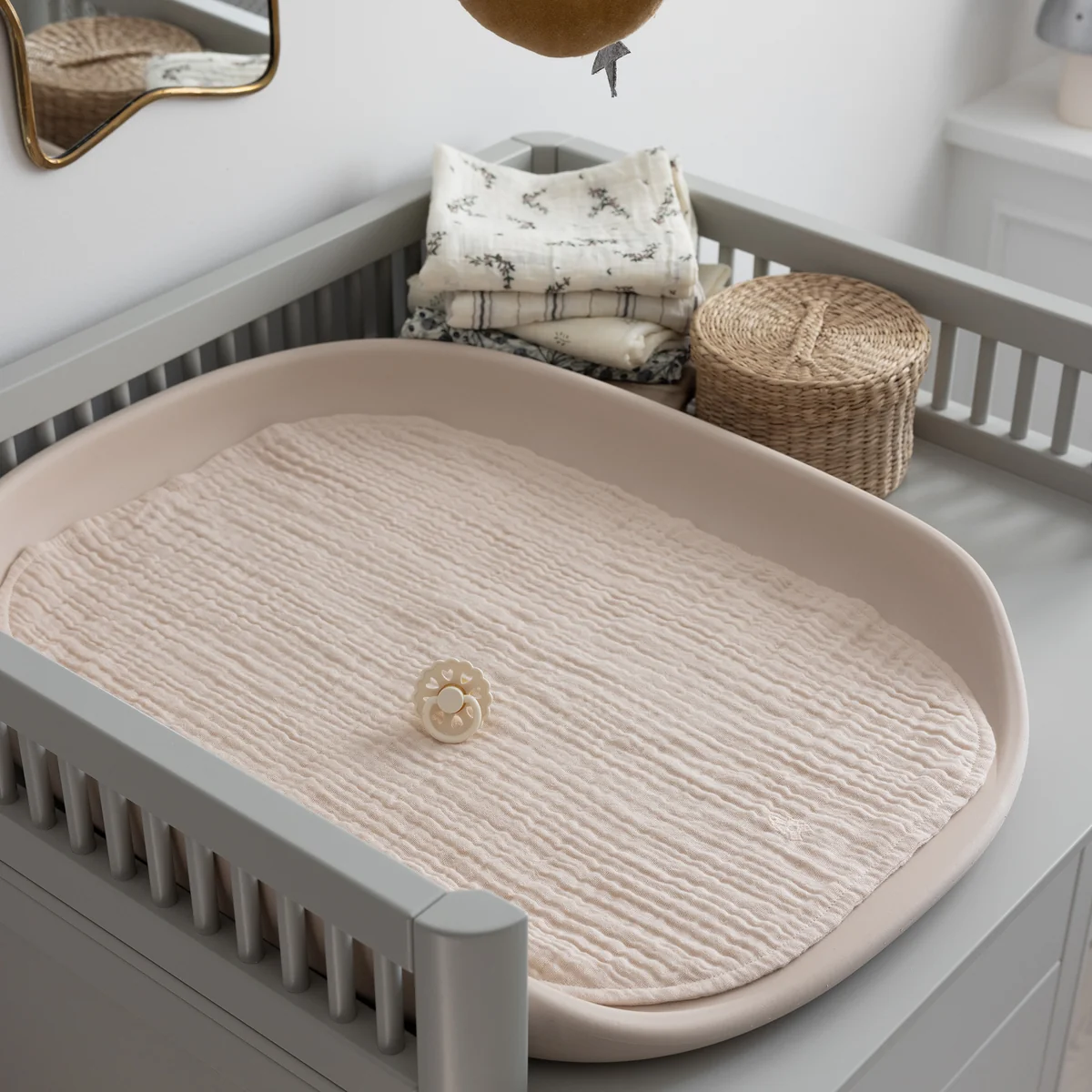 La texture douce de la mousseline offre au bébé une surface confortable et douillette pendant le changement de couche. La taille généreuse du matelas à langer offre suffisamment d'espace et de confort pour créer un environnement de change agréable.