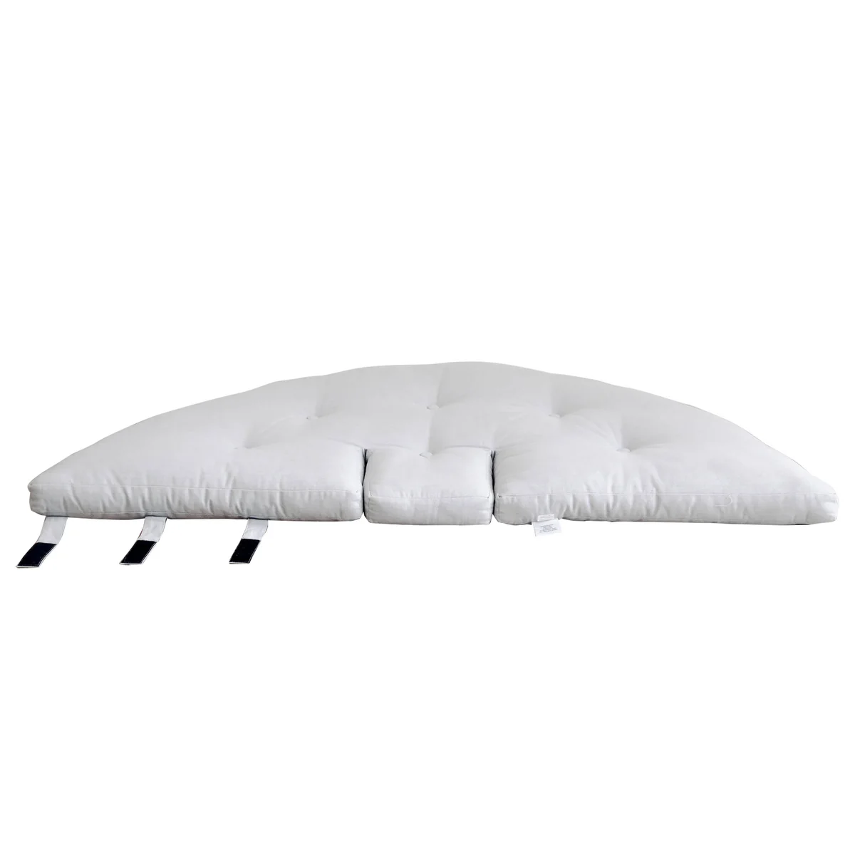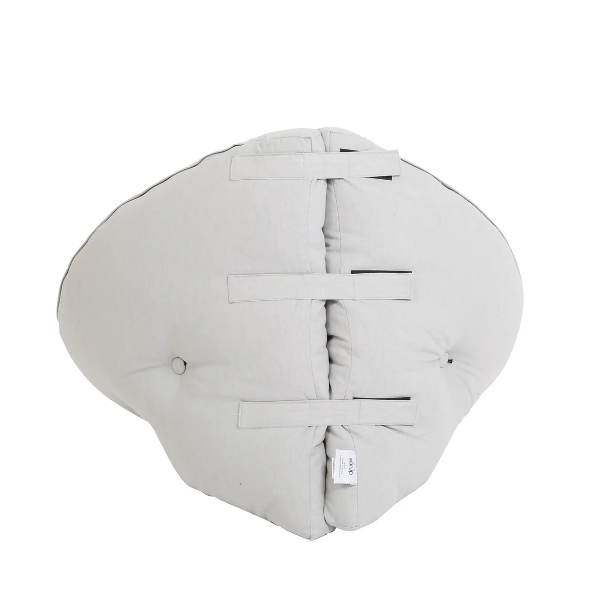 Nido de Karup Design est un futon en forme de demi-cercle qui peut être transformé en fauteuil confortable en un tour de main à l'aide de quatre fermetures velcro. Les deux variantes invitent à la méditation, au farniente, à la lecture et au sommeil.